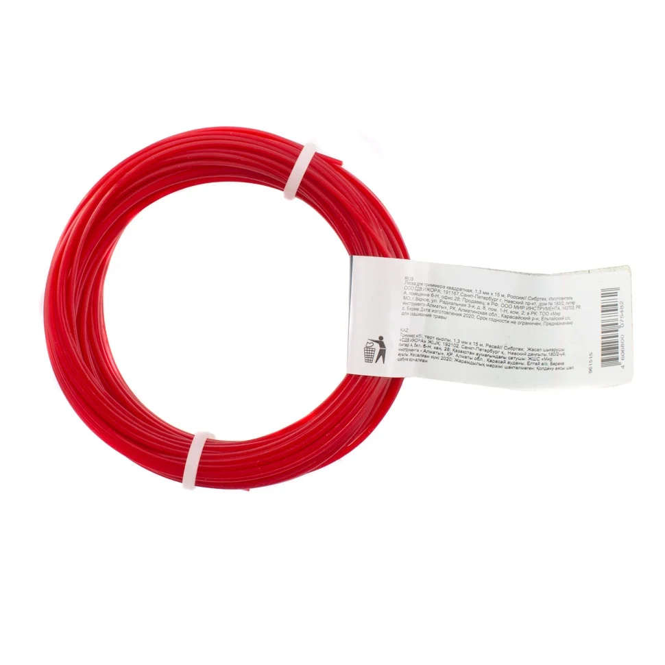 Квадратная леска Сибртех 961515 диаметром 1,3 мм и длиной 15 м заправляется в катушку триммера. Ее можно устанавливать на электрические модели мощностью 250-300 Вт для скашивания газонной и молодой травы.ПреимуществаПрочность и износостойкость — леска изготовлена из высокопрочного нейлона, а квадратная форма повышает ее устойчивость к излому.Эффективность — леска с острыми гранями быстро срезает траву, обеспечивая высокую производительность триммера.Экономичная упаковка — корда длиной 15 м хватит надолго.
