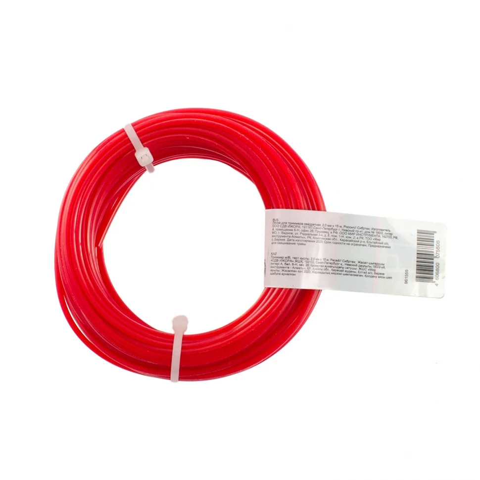Квадратная леска Сибртех 961555 диаметром 2,0 мм и длиной 15 м заправляется в катушку триммера. Ее можно устанавливать на электрические триммеры мощностью от 1000 Вт, а также бензотриммеры. Леска применяется для скашивания густой травы и сорняков с небольшими стеблями.ПреимуществаПрочность и износостойкость — леска изготовлена из высокопрочного нейлона, а квадратная форма повышает ее устойчивость к излому.Эффективность — леска с острыми гранями быстро срезает траву, обеспечивая высокую производительность триммера.Экономичная упаковка — корда длиной 15 м хватит надолго.