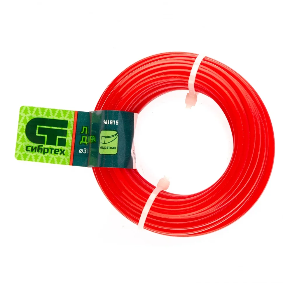 Леска Сибртех 3,0 мм х 10 м с квадратным сечением применяется в качестве режущего элемента с высокопроизводительными триммерами, оснащенными бензиновым или электрическим двигателем. Острые углы корда обеспечивают высокое качество скашивания как молодой, так и грубой травы, небольших кустарников, растений с толстыми стеблями.Преимущества:Квадратное сечение позволяет повысить качество покоса и избежать перегрузки двигателя.Корд не рвет траву при скашивании, поэтому обработанные участки не желтеют.Нейлон делает леску эластичной, прочной и износоустойчивой, а также обеспечивает малый вес (80 г).