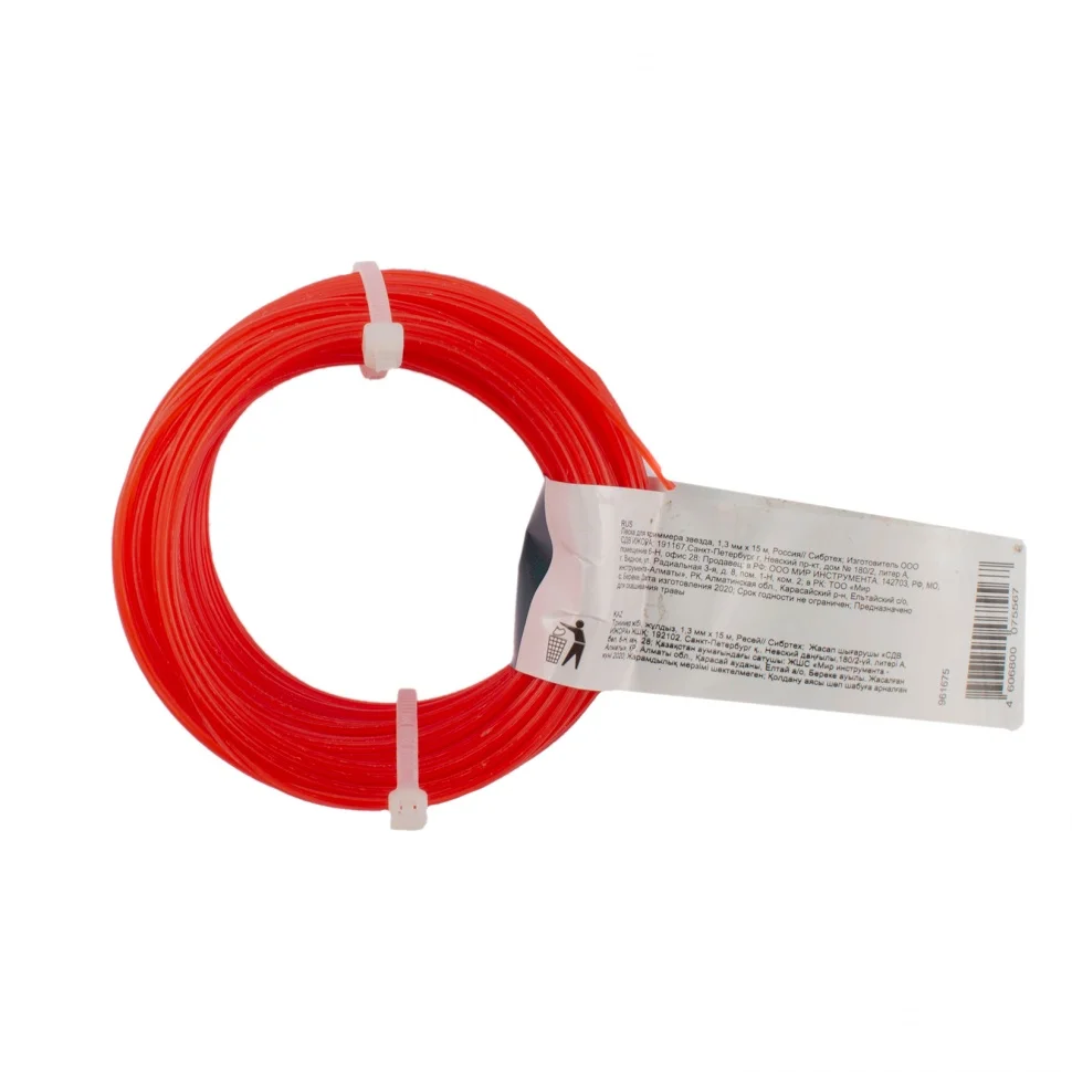 Леска Сибртех 1,3 мм х 15 м предназначена для триммерной катушки и используется с электро- и бензокосами малой мощности. Она подходит для чистовой стрижки газона, борьбы с сорняками и сухой травой, для скашивания молодых стеблей многолетних растений на придомовой территории.Преимущества:Высокая режущая способность лески улучшает производительность триммера и снижает нагрузку на его двигатель.Леска с пятиугольным сечением формирует аккуратный срез и защищает подстриженную траву от высыхания.Корд изготовлен из нейлона, поэтому отличается износоустойчивостью, повышенной прочностью и малым весом (вес мотка всего 20 г).Леска медленно тратится, поэтому длины 15 м хватит на несколько месяцев.