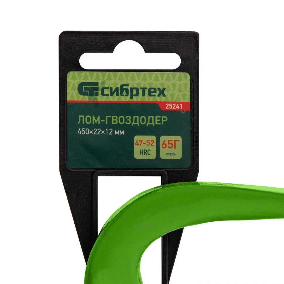 Лом-гвоздодер Сибртех 25241, 450 х 22 х 12 мм, позволяет удалять гвозди, а также срывать доски с пола, разбирать ящики, демонтировать заборы, вагонку со стен или шифер с крыши. Может служить рычагом для поднимания грузов, поскольку прямоугольно-овальный профиль значительно усиливает его на момент излома. Инструмент подходит для профессионального и бытового применения.ПреимуществаЛом-гвоздодер характеризуется прочностью и устойчивостью к деформациям, т.к. изготовлен из стали 65Mn методом ковки.Рабочие части не подвержены износу, поскольку закалены до твердости 42-44 HRC.Инструмент не боится коррозии - на всю длину корпуса нанесено защитное покрытие.