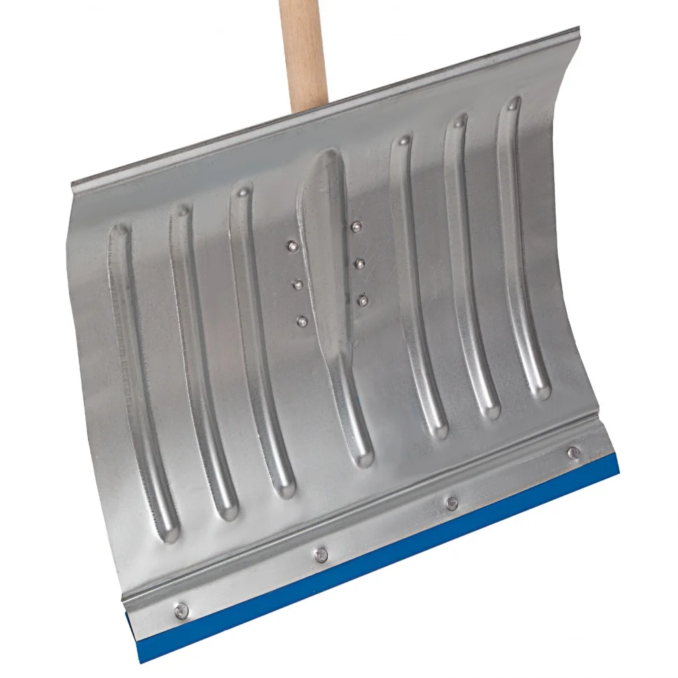 Алюминиевая лопата для уборки снега Сибртех 61582 с деревянным черенком, 430 х 370 х 1350 мм, — ручной инструмент, которым можно освободить от снежных заносов тротуар, садовые дорожки, подъездные пути к дому или гаражу. Длинный черенок позволяет работать, не нагружая позвоночник. Инструмент устойчив к низким температурам и выдерживает мороз до -60 градусов.ПреимуществаРебра жесткости принимают на себя основную нагрузку, защищая ковш от повреждений при изгибающих нагрузках.Защитная накладка на кромке ковша облегчает уборку слежавшегося снега и предотвращает изнашивание инструмента.Ковш из алюминиевого сплава и деревянная рукоятка не подвержены коррозии, поэтому лопата прослужит долго.Черенок крепится к тулейке саморезами, что обеспечивает высокую надежность соединения.