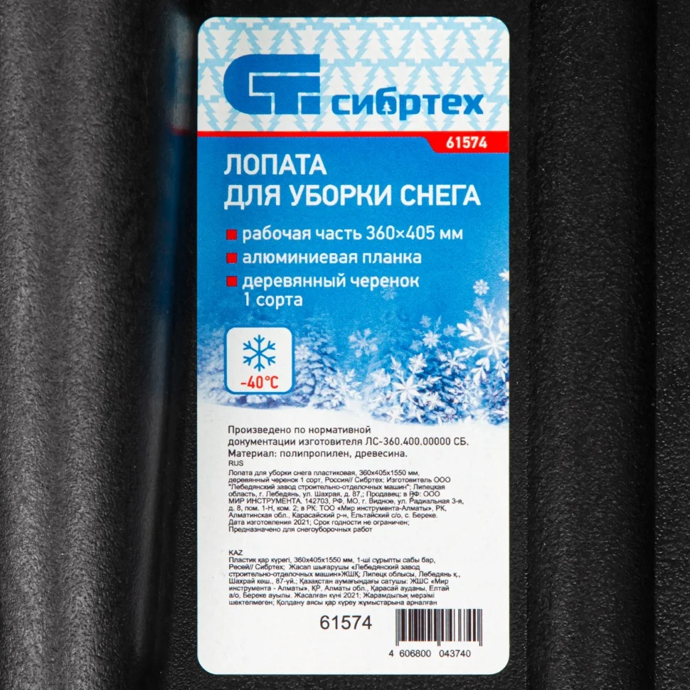Пластиковая лопата Сибртех 61574 размером 360 х 405 х 1550 мм, с деревянным черенком 1 сорта, позволяет облегчить уборку снега. С ее помощью можно очистить дорожки в загородном доме, выезд из гаража и т.д. С лопатой весом 1,38 кг можно долго работать без усталости. А за счет длины 1550 мм с ней комфортно работать, т.к. снижается нагрузка на спину.ПреимуществаКовш выполнен из ударопрочного полипропилена, который выдерживает морозы до -30 °С.Кромка ковша оснащена защитной накладкой из алюминиевого сплава, благодаря чему он защищен от повреждений и износа, а также справляется с очисткой слежавшегося снега и наста.Дополнительные ребра жесткости повышают устойчивость ковша к нагрузкам.Высокую эффективность и скорость работы обеспечивает углубленный ковш, вмещающий большое количество снега.Рабочая часть оснащена высокими бортиками, поэтому снег не вываливается во время работы.Черенок изготовлен из древесины первого сорта, поэтому прослужит долго.Деревянный черенок удобно лежит в руке и не проскальзывает.