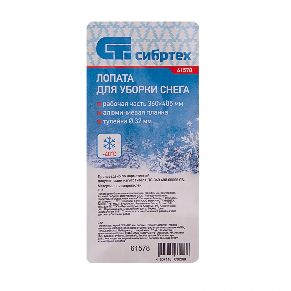 Пластиковая лопата Сибртех 61578, 360 х 405 мм, без черенка, используется для уборки снега на занесенных дорожках, тротуарах, подъездных путях. Эффективность работ обеспечивается благодаря вместительному ковшу с высокими бортиками. Ковш можно установить на черенок диаметром 32 мм, лопата совместима с артикулами 68408, 68412, 68409.ПреимуществаРабочая плоскость, усиленная ребрами жесткости, выдерживает повышенные нагрузки без риска излома.Ковш из ударопрочного полипропилена рассчитан на работу при температуре до -30 градусов и подходит для многократного использования.Кромка ковша защищена от истирания алюминиевой окантовкой и легко проникает в плотный снег и наст.