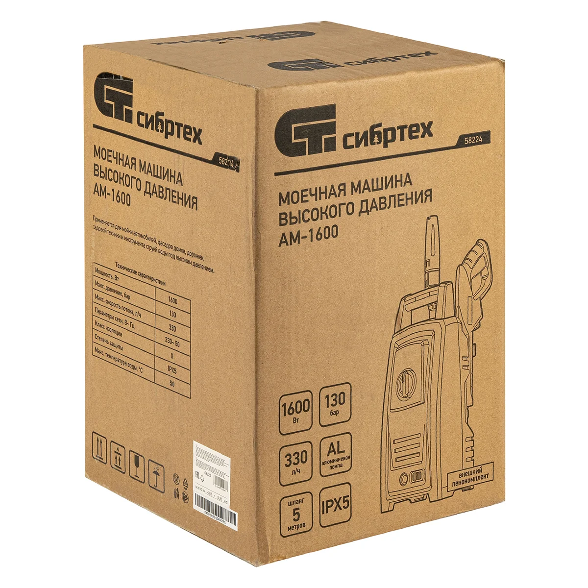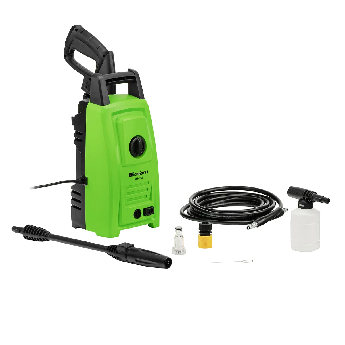 Переносная моечная машина высокого давления Сибртех AM-1600 58224 мощностью 1600 Вт и производительностью 330 л/ч подает струю воды под давлением 130 бар. Позволяет быстро очистить садовые дорожки, забор, стены строений, садовый инвентарь, уличную мебель, кузов автомобиля. Машина подключается к водопроводу, а также способна работать в режиме самовсасывания — в этом случае в качестве источника воды можно использовать любую емкость. Устройство будет полезно владельцам дачных участков.