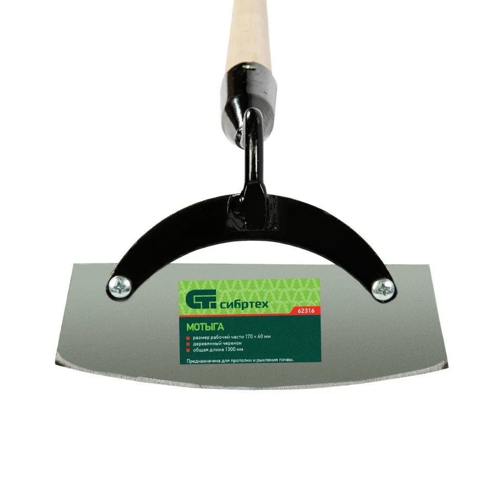 Стальная мотыга Сибртех 62316 размером 170 х 60 х 1300 мм, с деревянным черенком, используется для рыхления почвы, уничтожения сорняков и окучивания растений. Полотно толщиной 2 мм легко проникает в землю и выдерживает интенсивные нагрузки. Инструмент поставляется в сборе с черенком, который снижает нагрузку на спину во время работы. Мотыга существенно облегчит уход за садом и огородом.ПреимуществаУстойчивость к износу — полотно изготовлено из среднеуглеродистой стали.Защита от коррозии — державка и тулейка покрыты порошковой эмалью, а полотно оцинковано.Прочный черенок — при изготовлении использована древесина твердых пород.Надежная фиксация — полотно соединено с тулейкой винтами, а черенок закреплен саморезом.Комфортная работа — черенок отшлифован, поэтому удобно лежит в руках.