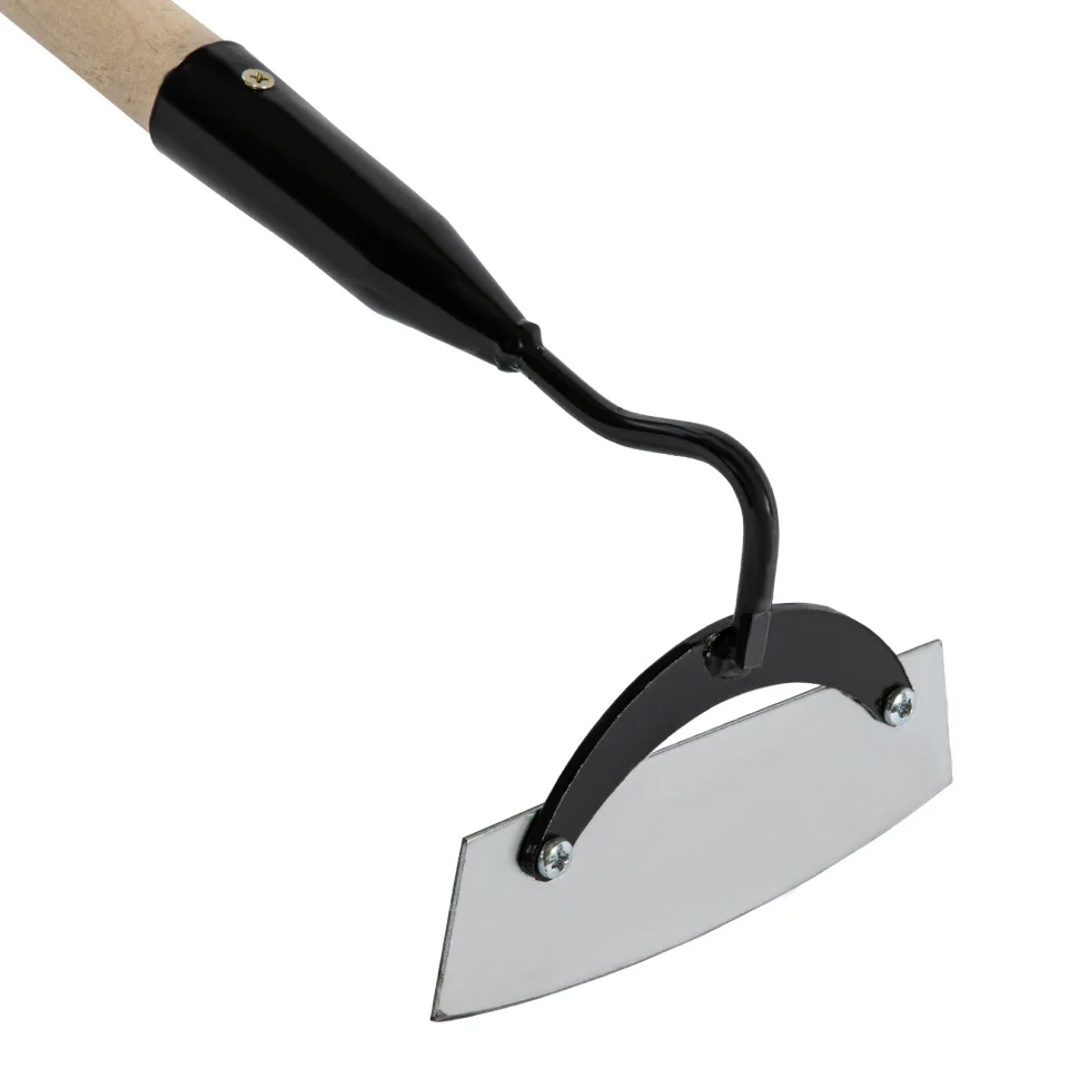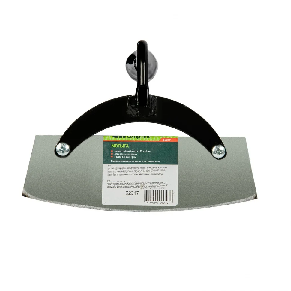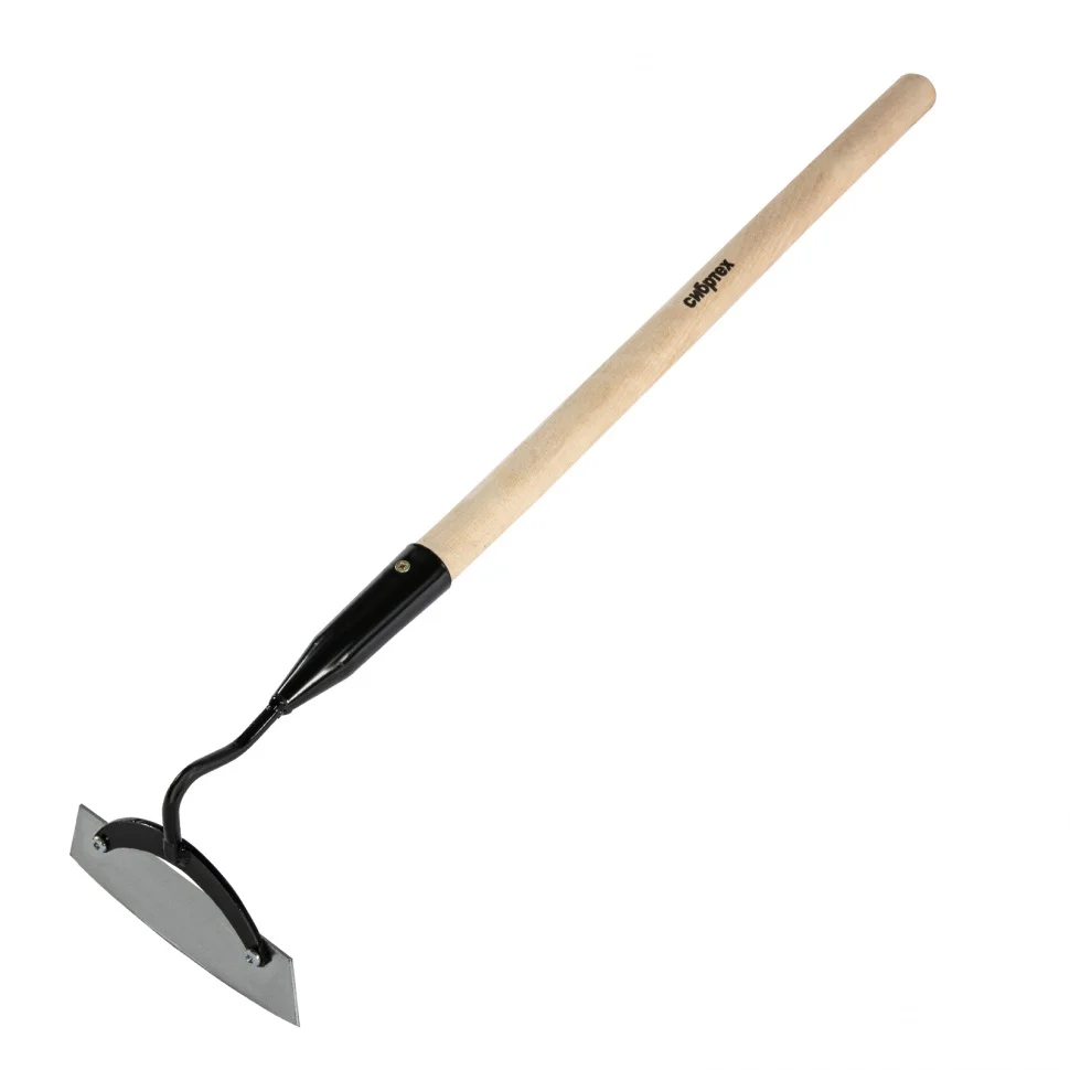 Стальная мотыга Сибртех 62317 размером 170 х 60 х 710 мм, с деревянным черенком, используется для рыхления почвы, уничтожения сорняков и окучивания растений. Полотно толщиной 2 мм легко проникает в землю и выдерживает интенсивные нагрузки. Мотыга существенно облегчит уход за садом и огородом.ПреимуществаУстойчивость к износу — полотно изготовлено из среднеуглеродистой стали.Защита от коррозии — державка и тулейка покрыты порошковой эмалью, а полотно оцинковано.Прочный черенок — при изготовлении использована древесина твердых пород.Длина черенка 710 мм — мотыга удобна для работы в стесненных условиях, например, в парнике или теплицеНадежная фиксация — полотно соединено с тулейкой винтами, а черенок закреплен саморезом.Комфортная работа — черенок отшлифован, поэтому удобно лежит в руках.