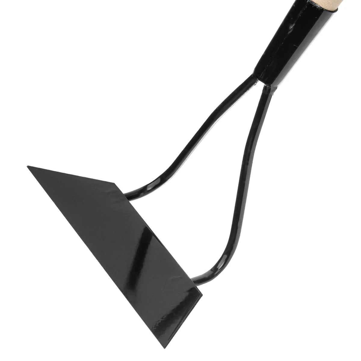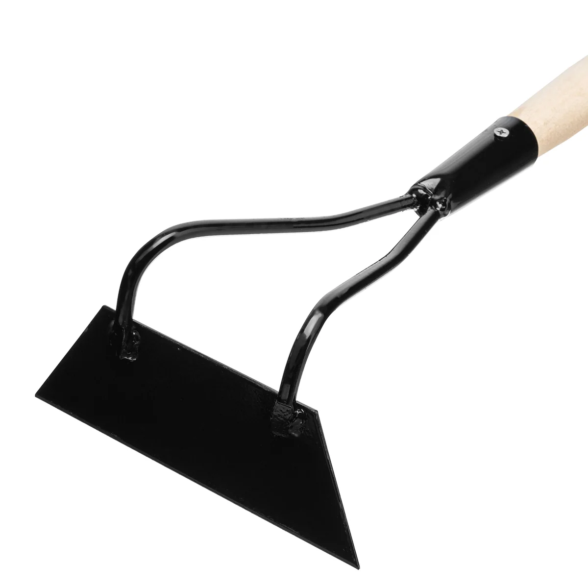 Стальная мотыга Сибртех 62332, 200 х 65 х 1380 мм, с деревянным черенком, используется для рыхления почвы, уничтожения сорняков и окучивания растений. Полотно имеет толщину 2 мм, что позволяет ему легко проникать в землю и выдерживать интенсивные нагрузки. Инструмент поставляется в сборе с черенком, который снижает нагрузку на спину во время работы. Мотыга существенно облегчит уход за садом и огородом.ПреимуществаПолотно устойчиво к износу, т.к. изготовлено из среднеуглеродистой стали.Инструмент не боится коррозии, поскольку его рабочая часть покрыта порошковой эмалью.Черенок не сломается при активном использовании, т.к. изготовлен из древесины твердых пород.Все части мотыги надежно соединены между собой — полотно приварено к тулейке, а черенок закреплен саморезом.Работа с мотыгой комфортна, поскольку отшлифованный деревянный черенок удобно лежит в руках.