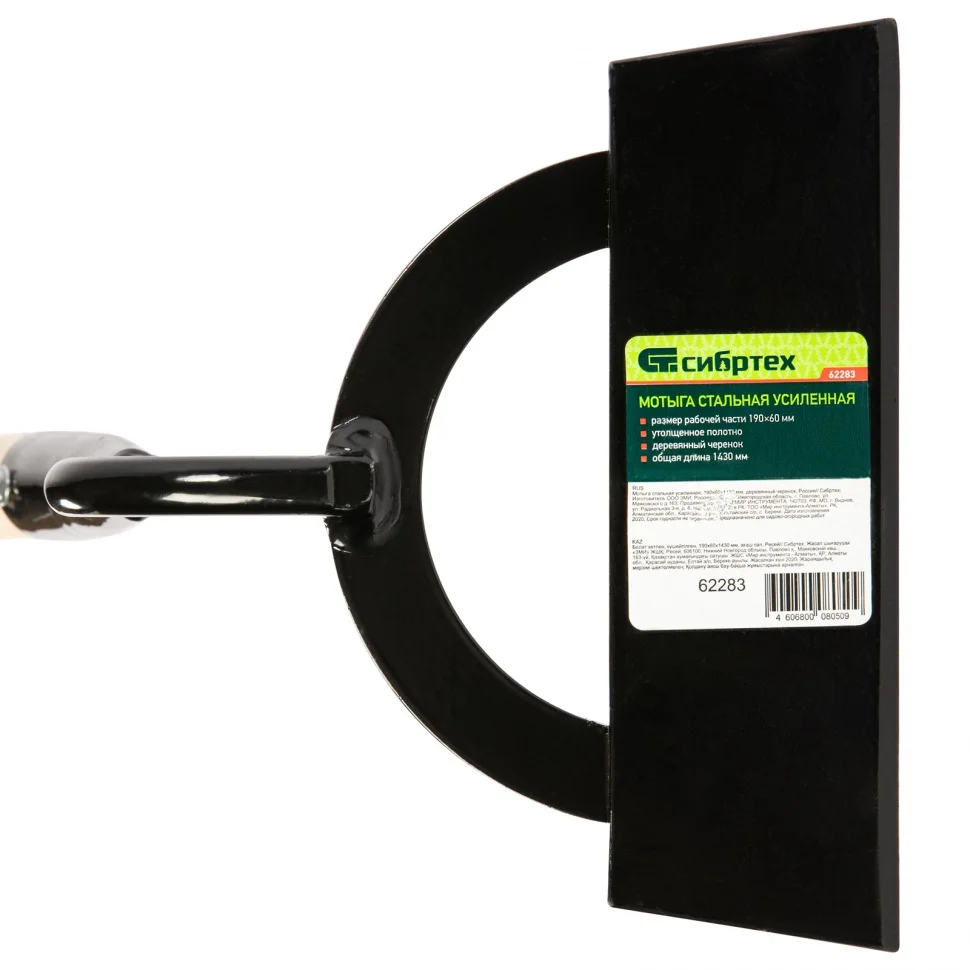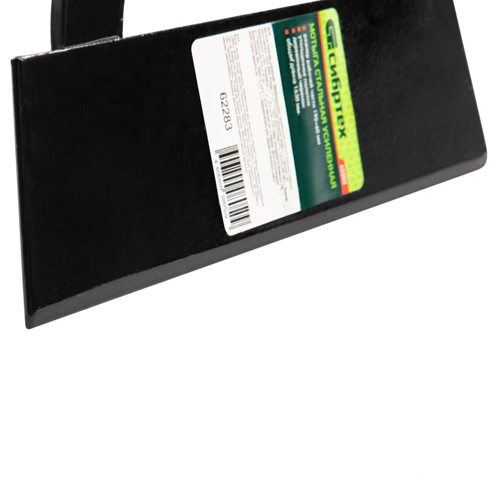 Стальная усиленная мотыга Сибртех 62283, 190 х 60 х 1430 мм, с деревянным черенком, — ручной инструмент для рыхления и прополки почвы, окучивания растений. Поставляется в сборе со шлифованным черенком из древесины твердых пород, обеспечивающим комфорт во время работы. Инструмент будет полезен владельцам дачных участков.ПреимуществаДолговечность — полотно изготовлено из прочной среднеуглеродистой стали толщиной 2,5 мм, устойчивой к деформациям.Коррозионная стойкость — на полотно нанесено защитное покрытие из порошковой эмали.Надежность — благодаря сварному креплению полотно не отскочит от тулейки во время работы.Крепкое соединение — черенок зафиксирован в тулейке саморезом.