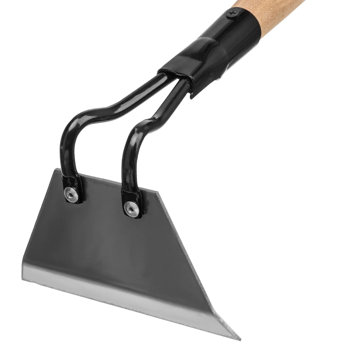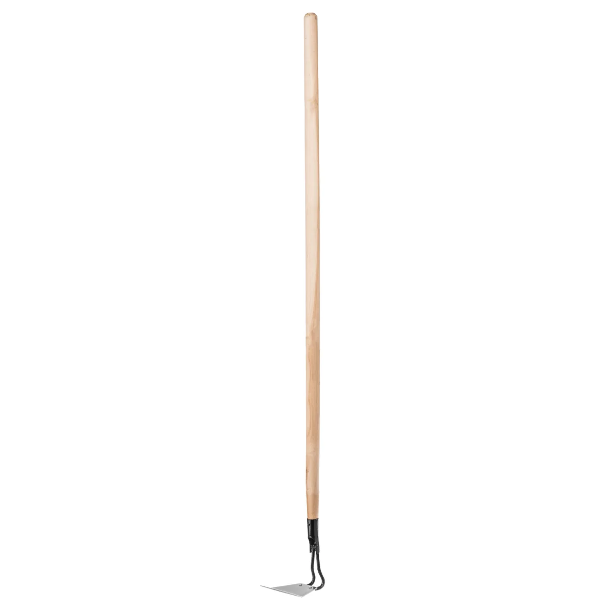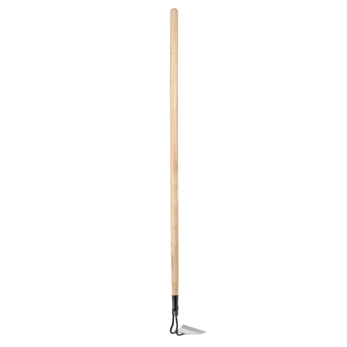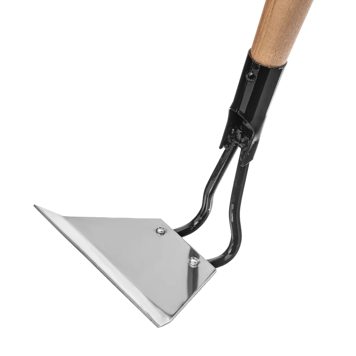 Усиленная мотыга Сибртех 62288 из нержавеющей стали, 150 х 90 х 1325 мм, с деревянным черенком, используется для рыхления почвы, уничтожения сорной травы и окучивания растений. Полотно из нержавейки устойчиво к коррозии. Отшлифованный деревянный черенок повышает комфортность работы, кроме того, благодаря ему снижается нагрузка на позвоночник. Мотыга пригодится владельцам приусадебных участков.ПреимуществаОстрое лезвие быстро погружается в почву и легко подрезает корни сорняков.За счет толщины 2,5 мм полотно обладает повышенной прочностью и долговечностью.Тулейка и державка, покрытые порошковой эмалью, устойчивы к воздействию влаги.Клепаное соединение полотна и державки обеспечивает надежность инструмента.Черенок из древесины твердых пород устойчив к излому, а благодаря креплению на саморез он не выскочит из тулейки.