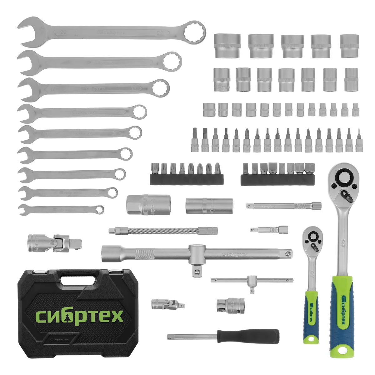 Набор инструментов, 1/2, 1/4, пластиковый кейс, 82 предмета Сибртех 13391