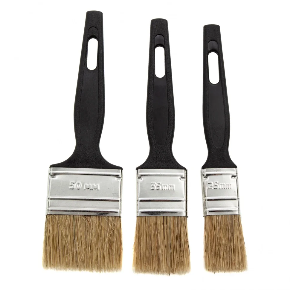 Набор Сибртех 82507 включает 3 флейцевые кисти шириной 25, 35 и 50 мм из светлой натуральной щетины с пластиковыми ручками. Изделия пригодятся при проведении малярных работ с любыми типами лакокрасочных материалов. Узкие кисти оптимально подходят для окрашивания мелких деталей и работы в труднодоступных местах.ПреимуществаЩетина HANKOW подверглась двойной выварке, за счет чего кисти не боятся воздействия растворителей, хорошо набирают и удерживают краску.ТОПС кистей составляет не менее 70, что улучшает их качественные характеристики.В рукоятках имеются отверстия для практичного хранения кистей в подвешенном виде.
