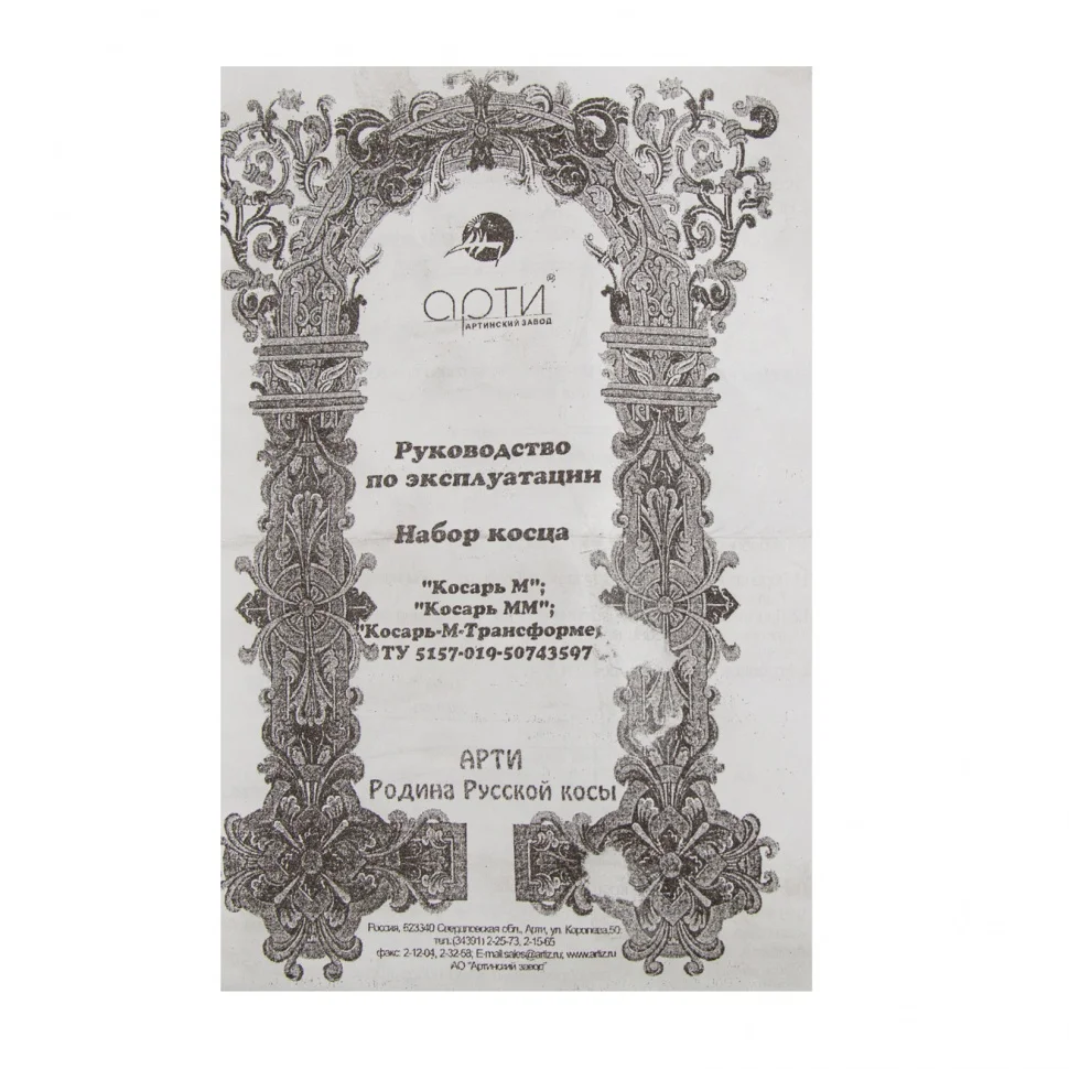 Набор косца АРТИ «Трансформер» №7 63578 включает косу «Сайга Люкс» с лезвием длиной 700 м и складное косовище. Используется для покоса травы на ровных участках большой площади. Косовище длиной 1700 мм позволяет косить с прямой спиной и долго не уставать. Полотно предварительно отбито и оправлено для подготовки к работе. Для придания лезвию остроты рекомендуется приобрести абразивный брусок - подойдет Сибртех 76425.ПреимуществаПолотно изготовлено из среднеуглеродистой стали методом горячей ковки, поэтому обладает прочностью и износостойкостью.Режущая кромка имеет твердость 39-49 HRC и долго сохраняет остроту, что обеспечивает высокий рабочий ресурс косы.Косовище легко складывается, поэтому инструмент удобен для хранения и транспортировки.Полотно покрыто эмалью и лаком, а значит, не подвержено коррозии.В набор входит подвижная деревянная рукоятка для установки на косовище, облегчающая удержание косы и повышающая комфорт во время работы.Удобство использования - резиновая накладка на верхней оконечности косовища позволяет надежно фиксировать инструмент во время работы.