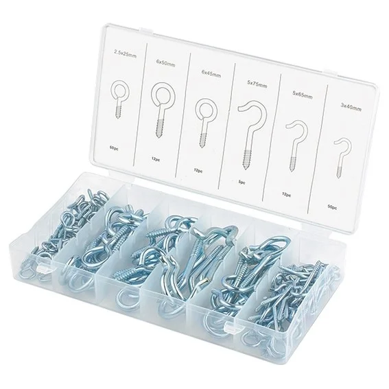 Набор крюков-саморезов Сибртех 47611 состоит из 151 предмета и включает саморезы с диаметром от 2,5 до 6 мм и длиной от 25 до 75 мм. В комплекте крепежи с головкой в форме кольца и крюка. Они используются при монтаже подвесных конструкций.ПреимуществаШирокий размерный ряд крепежей увеличивает возможности применения набора.Материал саморезов — сталь, позволяющая выдерживать значительные нагрузки.Благодаря цинковому покрытию крюки-саморезы не боятся коррозии, а значит, могут использоваться для установки конструкций на улице.Набор поставляется в пластиковом кейсе с отсеками под крепежи каждого размера — это упрощает хранение и транспортировку.