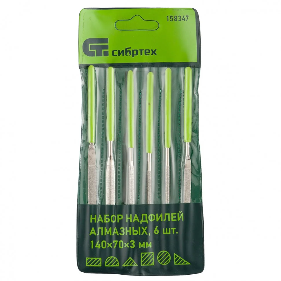 Набор алмазных надфилей Сибртех 158347 из 6 шт., 140 х 70 х 3 мм, предназначен для опиливания твердых поверхностей — стекла, металла, камня, керамики. В комплекте надфили с самыми распространенными профилями, благодаря чему можно обрабатывать плоские детали, пазы, углы, отверстия, сложные грани и рельефные поверхности. Набор будет полезен при проведении слесарных или ремонтно-отделочных работ, пригодится и в быту.ПреимуществаАлмазная крошка, являющаяся абразивом, характеризуется высокой твердостью, что увеличивает ресурс надфилей.Обрезиненные рукоятки не выскальзывают из ладони, что обеспечивает комфорт во время работы.Надфили с яркими рукоятками хорошо заметны среди других инструментов, поэтому не затеряются в рабочем пространстве.