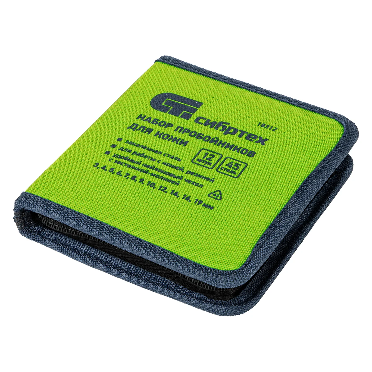 Набор пробойников для кожи Сибртех 18312, 12 шт. в чехле, позволяет пробивать отверстия диаметром 3, 4, 5, 6, 7, 8, 9, 10, 12, 14, 16 и 19 мм посредством ударного воздействия киянкой. Предназначен для работы с плотными материалами: кожей и резиной. Благодаря высокоточной прецизионной заточке режущих кромок пробойники выполняют ровный и качественный рез.ПреимуществаПробойники из инструментальной стали 45 отличаются прочностью и долговечностью.Рельефные рукоятки обеспечивают надежный хват и комфортную работу.Набор поставляется в жестком нейлоновом чехле на молнии для удобной транспортировки и хранения.