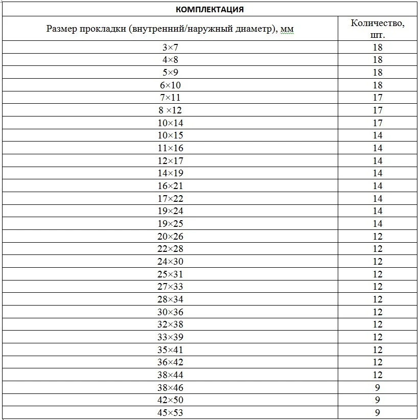 Набор резиновых уплотнительных прокладок Сибртех 47597 с наружным диаметром от 7 до 53 мм состоит из 406 предметов и используется для создания герметичных конструкций. Он универсален в применении, т.к. включает кольца наиболее часто встречающихся размеров. Прокладки используют для сантехнических и других ремонтных работ, а также в качестве уплотнительных резинок для автомобиля.ПреимуществаКольца изготовлены из маслобензостойкой резины, поэтому устойчивы к износу.Набор упакован в надежный пластиковый кейс, удобный для хранения и транспортировки.Уплотнительные прокладки рассортированы по размерам, что упрощает поиск нужной.