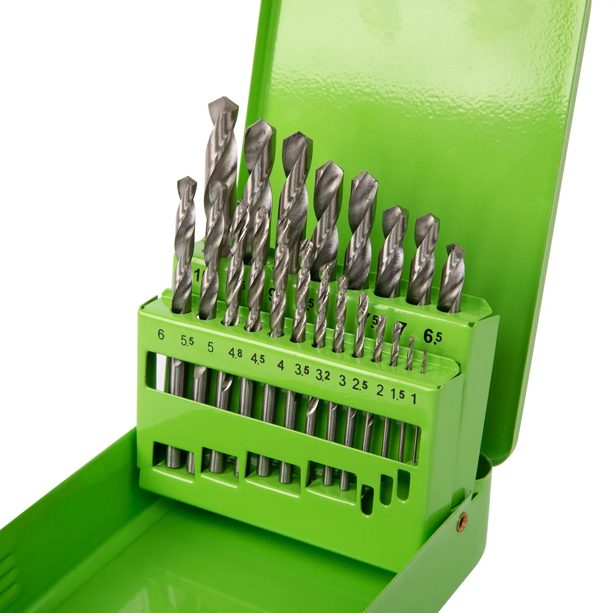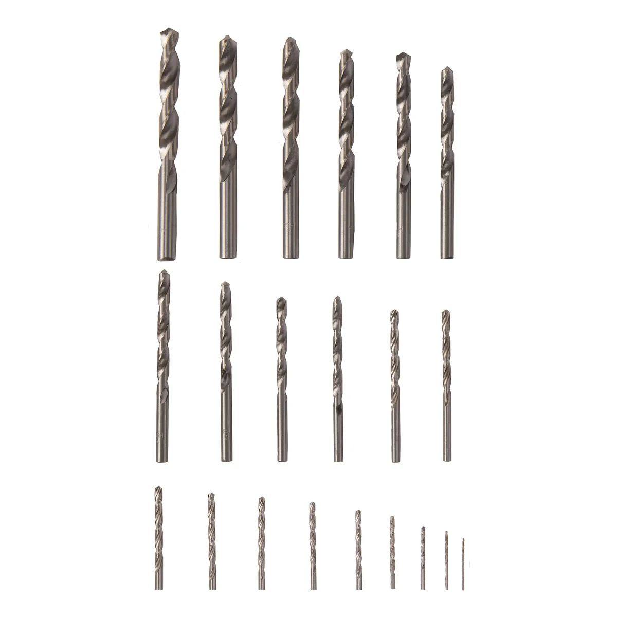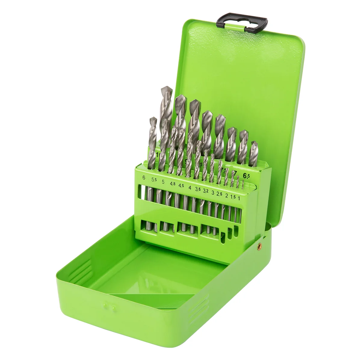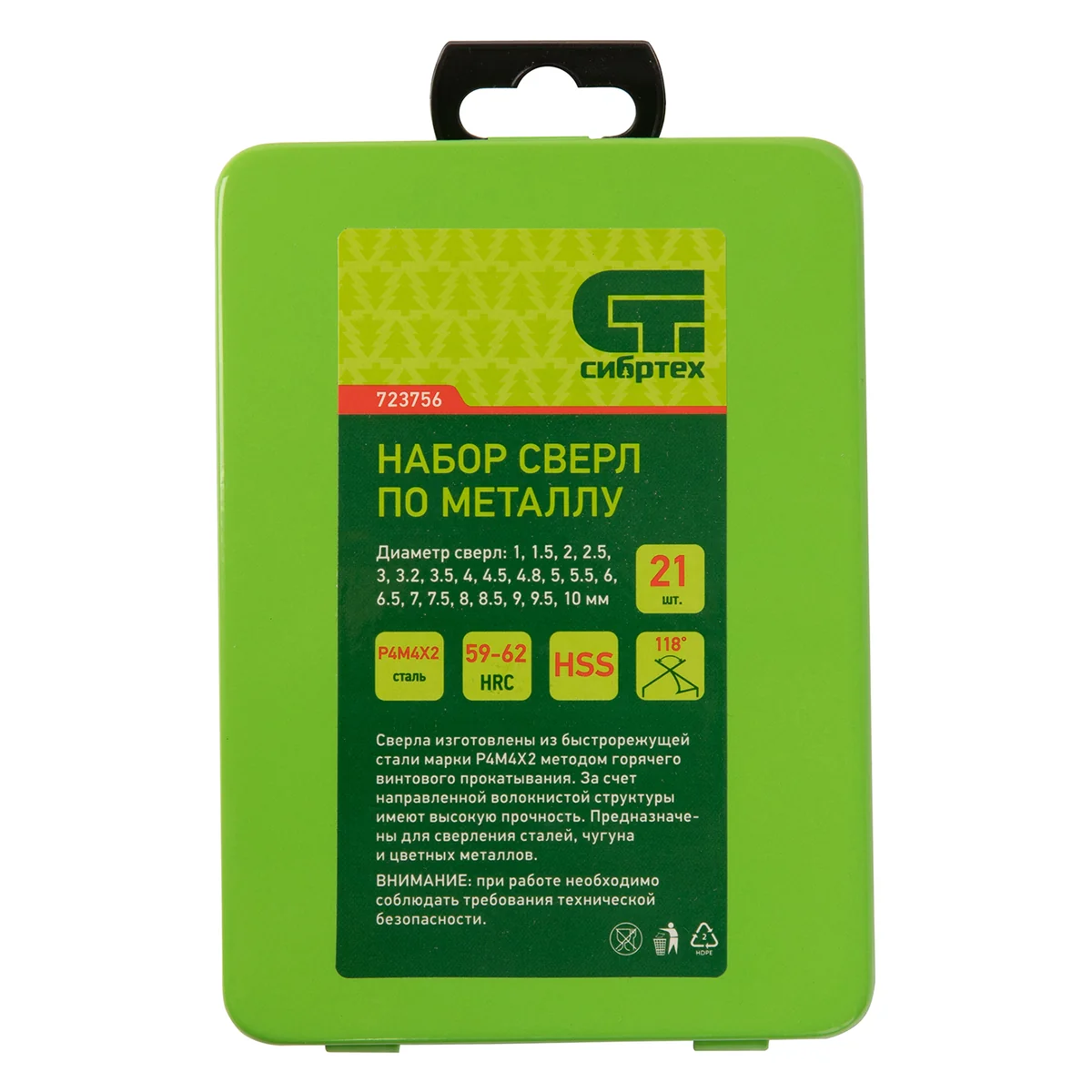 Набор сверл по металлу Сибртех 723756 диаметром 1-10 мм (через 0,5 мм, 3,2, 4,8 мм), из стали HSS, с цилиндрическим хвостовиком, состоит из 21 шт. и упакован в металлический бокс. Используется для получения отверстий в черных металлах, в том числе стали и чугуне. Большой выбор оснасток позволяет точно подобрать необходимый размер. Набор поставляется в надежном металлическом боксе и пригодится во время строительства и ремонта, а также будет полезен для бытовых работ.Преимущества Прочность — сверла изготовлены из быстрорежущей стали, устойчивой к механическому воздействию и перегреву. Высокий ресурс работоспособности — режущие кромки твердостью 59-62 HRC долго держат заточку. Универсальность — сверла с цилиндрическими хвостовиками совместимы со всеми типами патронов. Улучшенный отвод стружки — поверхность оснасток отполирована, что уменьшает их трение о стенки отверстий. Защита от заклинивания — диаметр направляющей части сверл уменьшается по направлению к хвостовику. Быстрый выбор оснастки — сверла помещены в гнезда с обозначениями размеров.