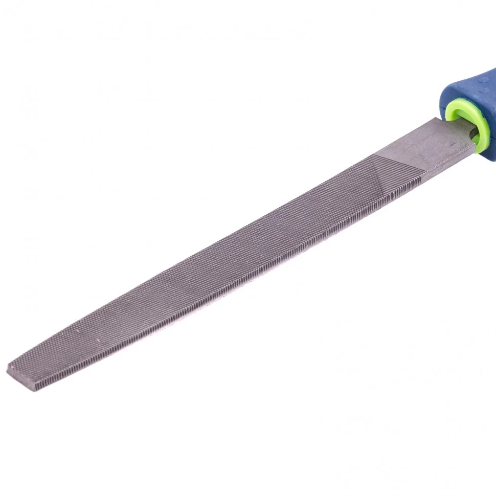 Плоский напильник Сибртех 16224, насечка №2, с полотном длиной 150 мм и двухкомпонентной рукояткой, — инструмент для ручной доводки металлических изделий. Применяется после грубой обработки драчевым напильником. Позволяет зачистить плоскую или выпуклую наружную поверхность, придать заготовке нужную форму или размер. У средней насечки No2 количество зубьев на 10 мм длины достигает 25, что позволяет снимать слой материала толщиной до 0,08 мм и обеспечивает точность опиловки. Напильник будет полезен в слесарной мастерской, а также дом или на даче.ПреимуществаРабочая часть из высокоуглеродистой стали У13А устойчива к истиранию, поэтому инструмент подходит для длительного использования.Эргономичная двухкомпонентная рукоятка не выскальзывает из руки, что повышает комфорт во время работы.Благодаря отверстию для подвешивания напильник удобен в хранении.