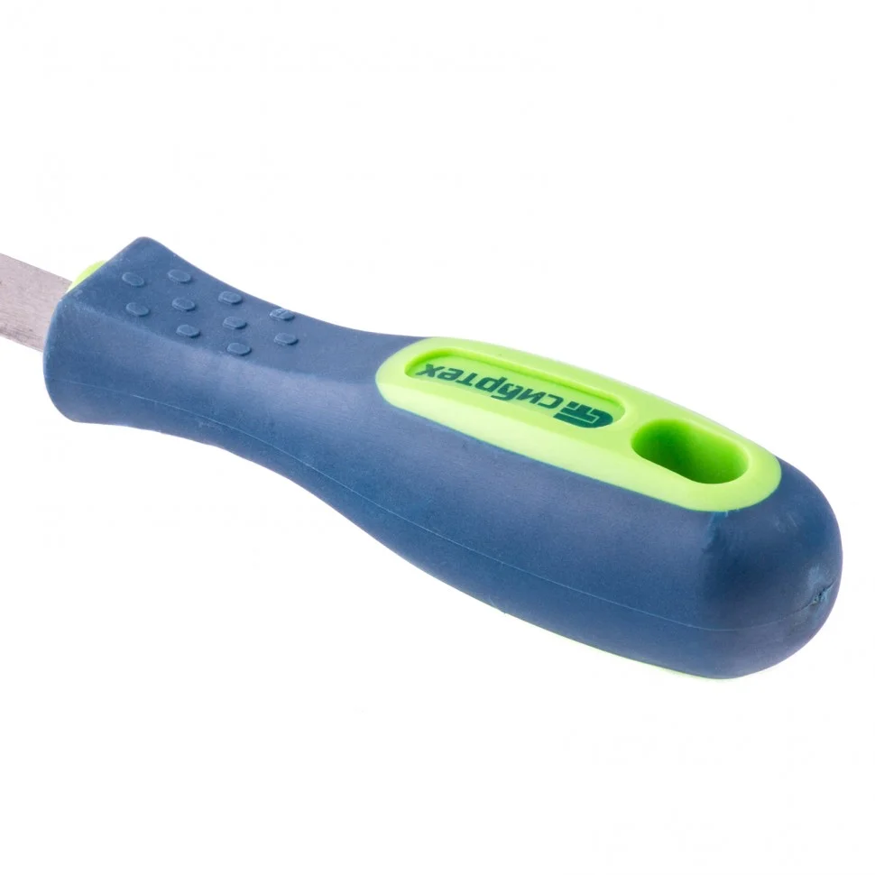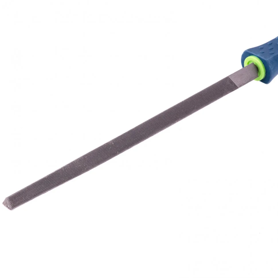 Трехгранный напильник Сибртех 16027, длина рабочей части 200 мм, с насечкой №2 и двухкомпонентной рукояткой, используется для ручной доводки металлических деталей, придания им нужной формы и размера. Оптимален для обработки треугольных отверстий, граней, пазов, внутренних углов. Насечка №2 с 13-25 зубьями на 1 см длины обеспечивает точную шлифовку после применения драчевого напильника. Инструмент будет полезен мастерам и любителям слесарного дела.ПреимуществаДолговечность — напильник изготовлен из высокоуглеродистой стали У13А, характеризующейся прочностью и устойчивостью к нагрузкам.Высокое качество опиловки — на полотно нанесена перекрестная насечка, в которой вспомогательные мелкие зубцы обеспечивают шлифовку материала.Комфорт во время работы — эргономичная двухкомпонентная рукоятка удобно лежит в руке и не выскальзывает из ладони.Удобное хранение — в тыльной части рукоятки имеется отверстие для подвешивания.