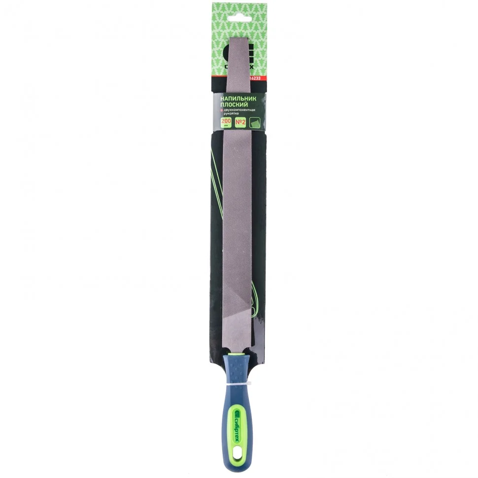 Плоский напильник Сибртех 16233, насечка №2, с полотном длиной 300 мм и двухкомпонентной рукояткой, — инструмент для ручной доводки металлических изделий. Применяется после грубой обработки драчевым напильником. Позволяет зачистить плоскую или выпуклую наружную поверхность, придать заготовке нужную форму или размер. У средней насечки No2 количество зубьев на 10 мм длины достигает 25, что позволяет снимать слой материала толщиной до 0,08 мм и обеспечивает точность опиловки. Напильник будет полезен в слесарной мастерской, а также дом или на даче.ПреимуществаРабочая часть из высокоуглеродистой стали У13А устойчива к истиранию, поэтому инструмент подходит для длительного использования.Эргономичная двухкомпонентная рукоятка не выскальзывает из руки, что повышает комфорт во время работы.Благодаря отверстию для подвешивания напильник удобен в хранении.