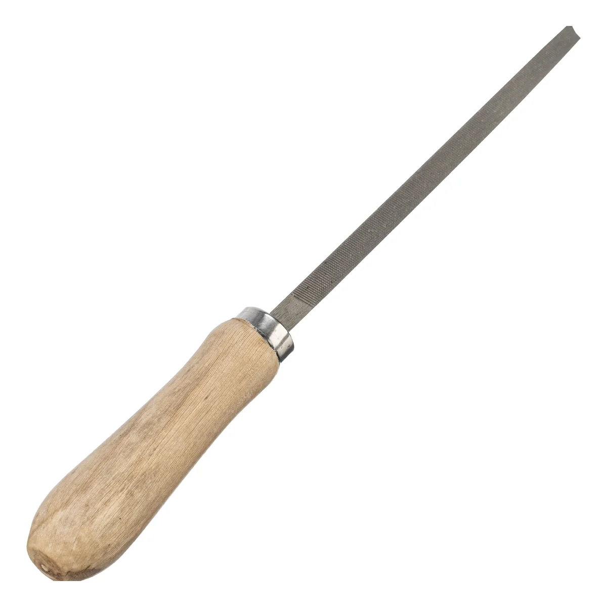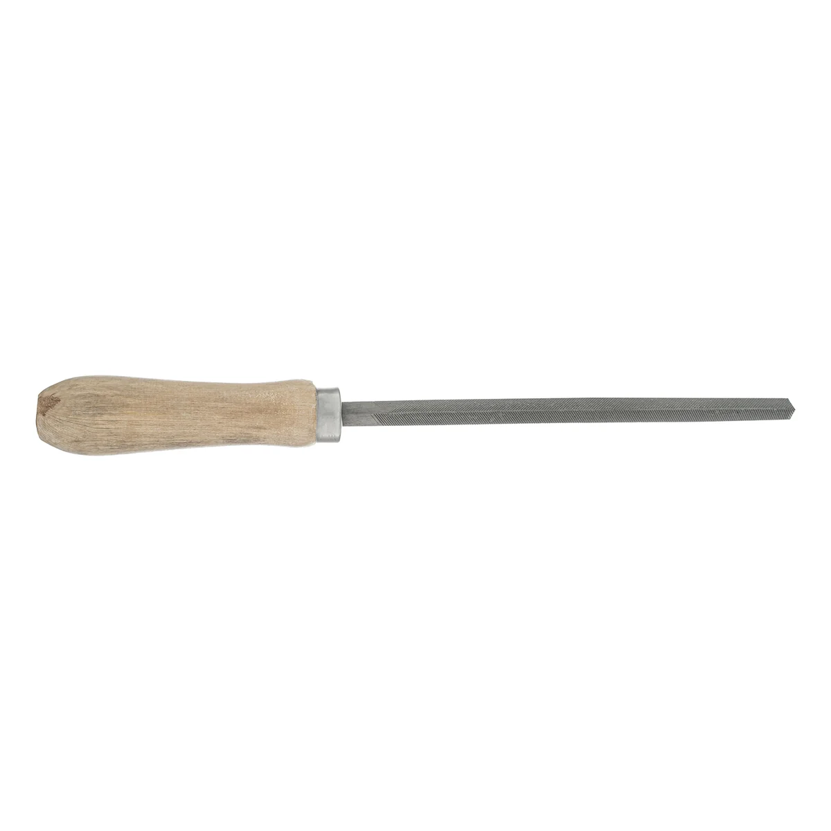 Трехгранный напильник Сибртех 16023 с деревянной ручкой, длина рабочей части 150 мм, используется для доводки металлических деталей. Им опиливают грани, внутренние углы, треугольные отверстия. Тип насечки — №2, поэтому инструмент рекомендован для промежуточной шлифовки после опиливания драчевым напильником. Используется в слесарном деле и в бытовых целях.ПреимуществаНапильник из углеродистой стали прочен и рассчитан на длительное применение.Перекрестная насечка обеспечивает высокую производительность при обработке изделий из твердых металлов.Удобная рукоятка из дерева твердых пород обеспечивает комфорт во время работы, а лаковое покрытие защищает ее от рассыхания.