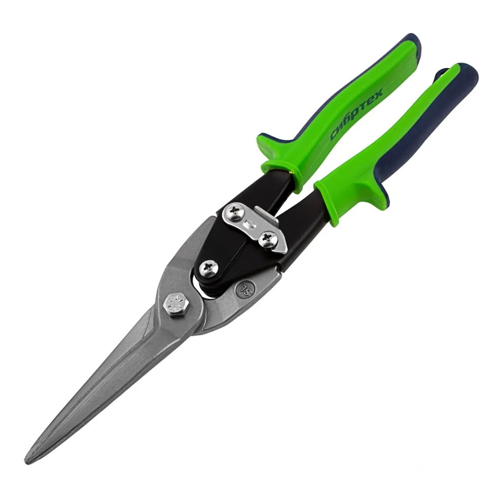 Ножницы Сибртех 78339 длиной 285 мм, из стали С55, с двухкомпонентными рукоятками, используются для прямого реза профильного и листового металла. Они найдут применение в хозяйстве в процессе ремонтных и монтажных работ с материалами толщиной до 0,8 мм.ПреимуществаПрочность и надежность — в качестве материала для ножниц использована сталь 55.Стойкость к деформации — режущие кромки закалены до твердости 55 HRC.Легкий рез — ножницы оснащены двойным рычажным механизмом.Эргономичные двухкомпонентные рукоятки — ножницы удобно лежат в руке, не скользят.Блокировочный замок — режущие кромки надежно фиксируются для хранения и транспортировки, риск случайного раскрытия исключен.Компактное хранение — на одной из рукояток предусмотрена петля для подвешивания ножниц.