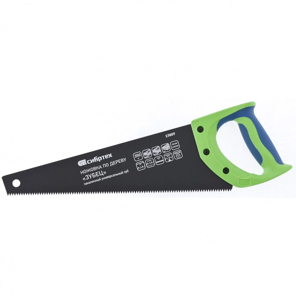 Ножовка по дереву Зубец , 350 мм, 7-8 TPI, каленый зуб 2D, защитное покрытие, двухкомпонентная рукоятка Сибртех 23809