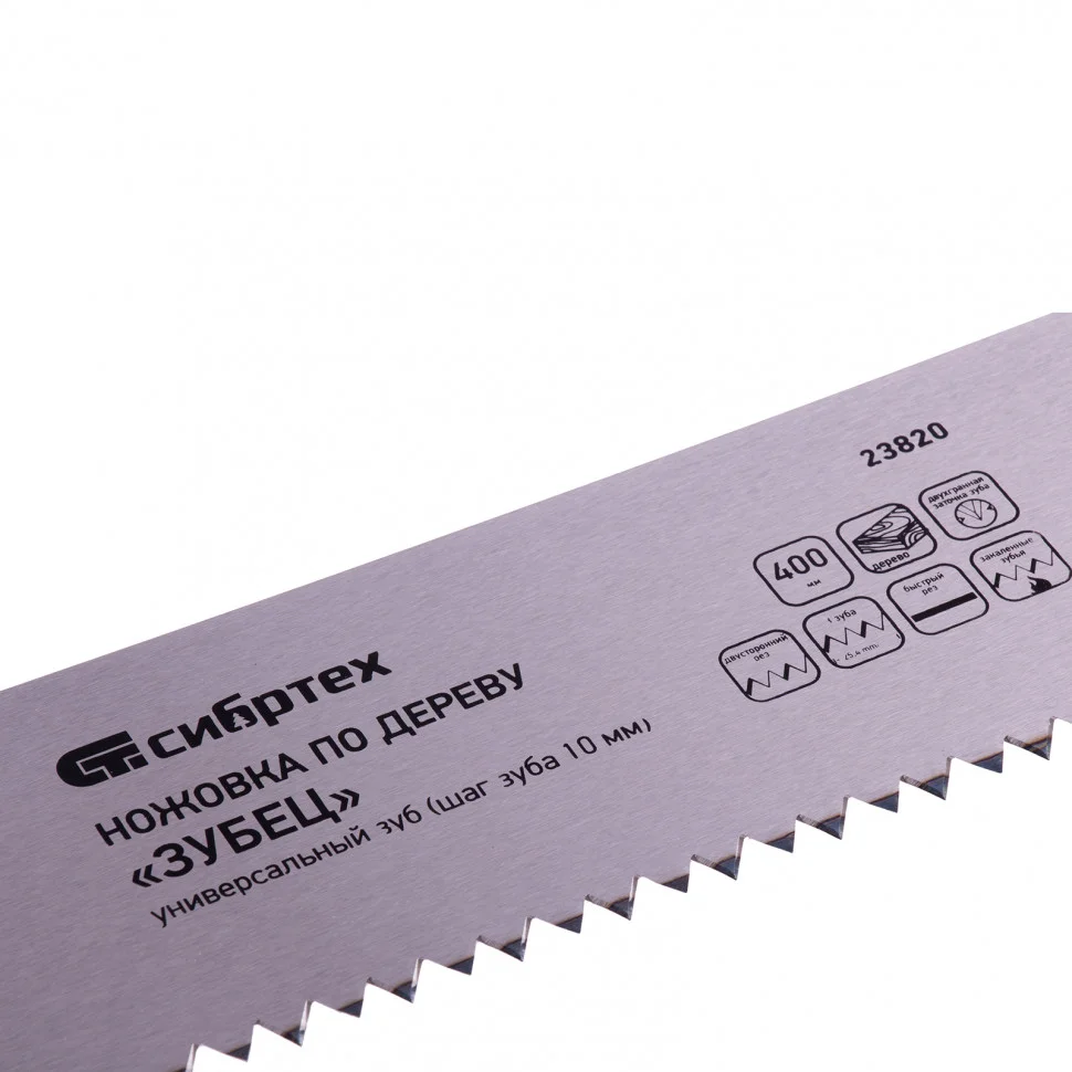 Ножовка по дереву Зубец , 400 мм, шаг зуба 10 мм, каленый зуб 2D, двухкомпонентная рукоятка Сибртех 23820