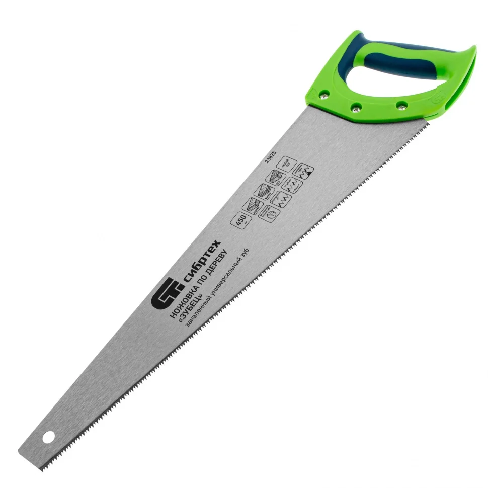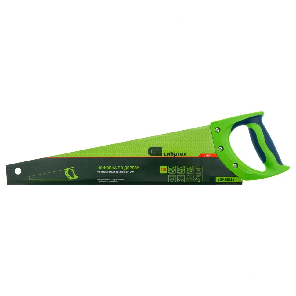 Ножовка по дереву Зубец , 450 мм, 11 TPI, зуб 2D, калёный зуб, 2-х компонентная рукоятка Сибртех 23825