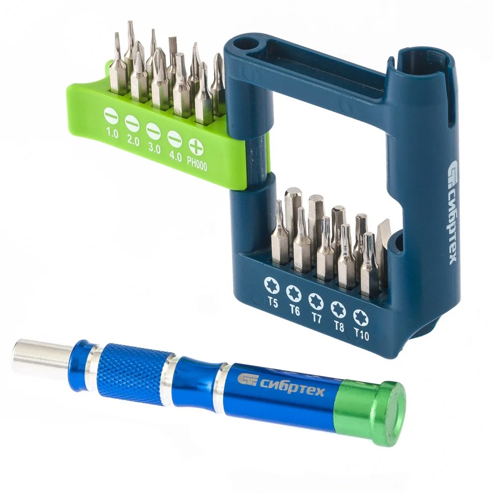 Отвертка для точных работ с набором бит, 21 шт, CrV Сибртех 13334