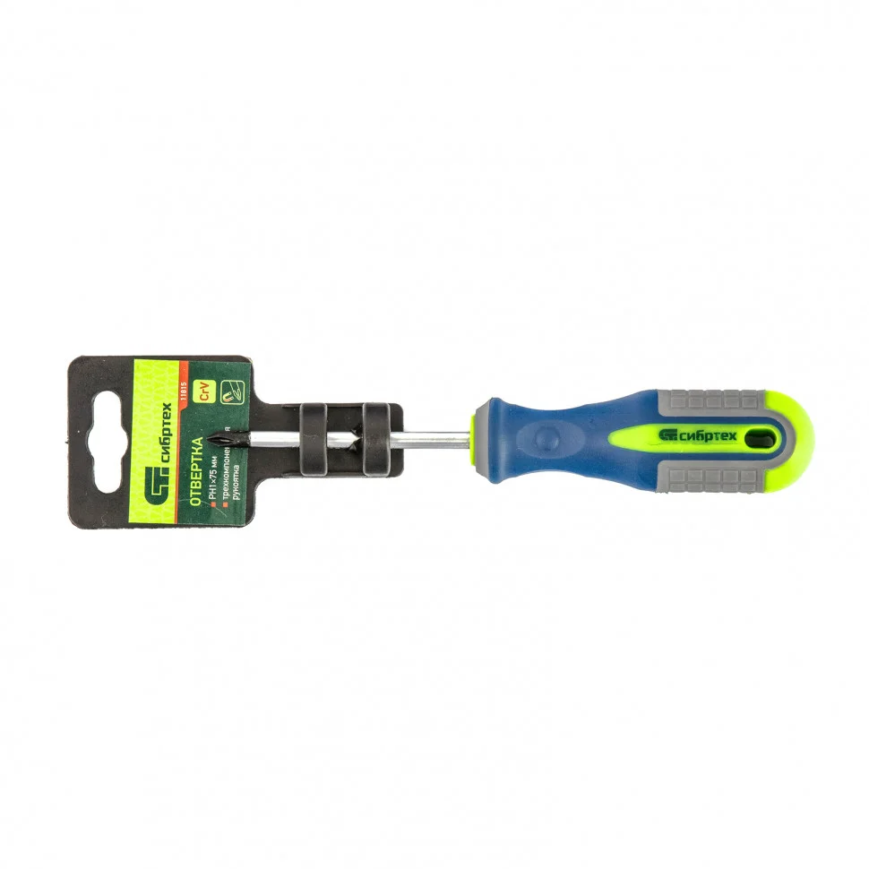 Отвертка Сибртех 11815, PH1 х 75 мм, из стали CrV, с 3-х компонентной рукояткой, пригодится частным мастерам для монтажа/демонтажа крепежных элементов типоразмера PH1. Она поможет произвести ремонтные и монтажные работы дома, в гараже, на даче. Благодаря стержню длиной 75 мм отверткой можно работать в углублениях.ПреимуществаСтержень отвертки обладает высокой прочностью и износостойкостью, т.к. изготовлен из хромованадиевой стали и закален до твердости 50-54 HRC.Фосфатированная рабочая часть позволяет добиться лучшего сцепления с головкой крепежа.За счет обозначения типа шлица и длины стержня на рукоятке удобно находить нужную отвертку.Трехкомпонентная рукоятка оснащена квадратными насечками и подпальцевыми выемками, за счет чего удобно ложится в руку и снижает нагрузку на запястье.