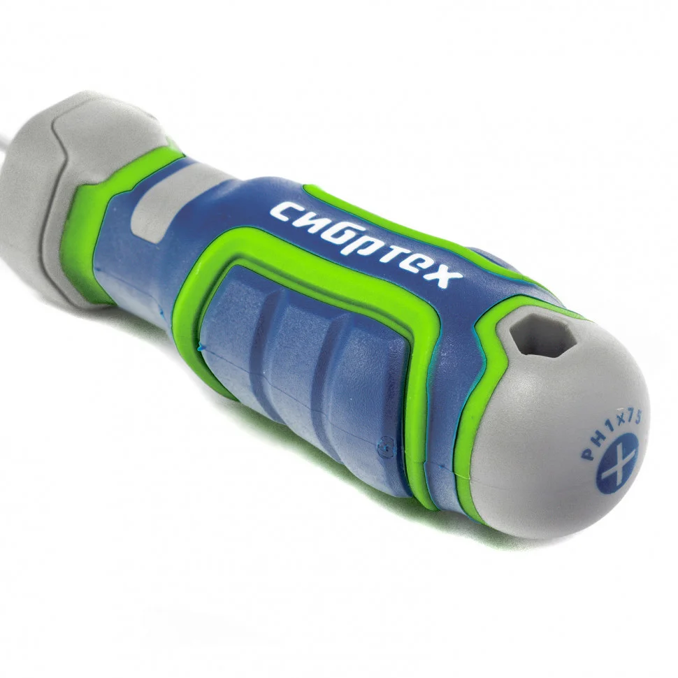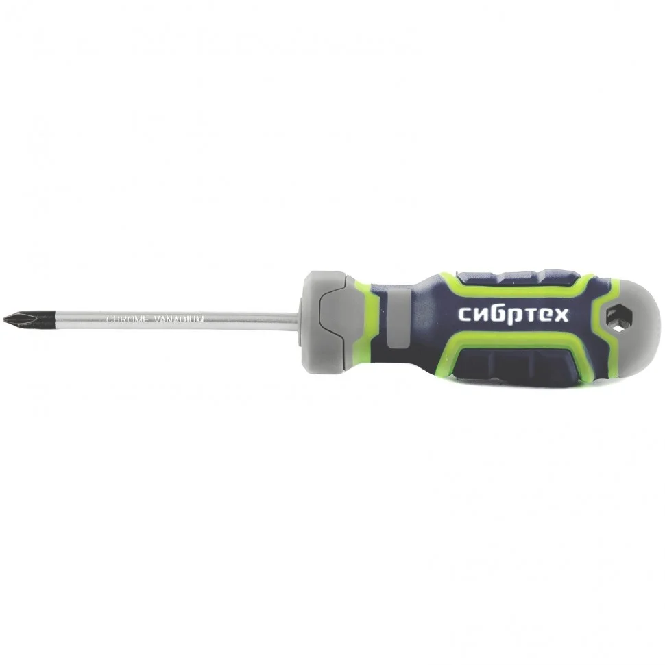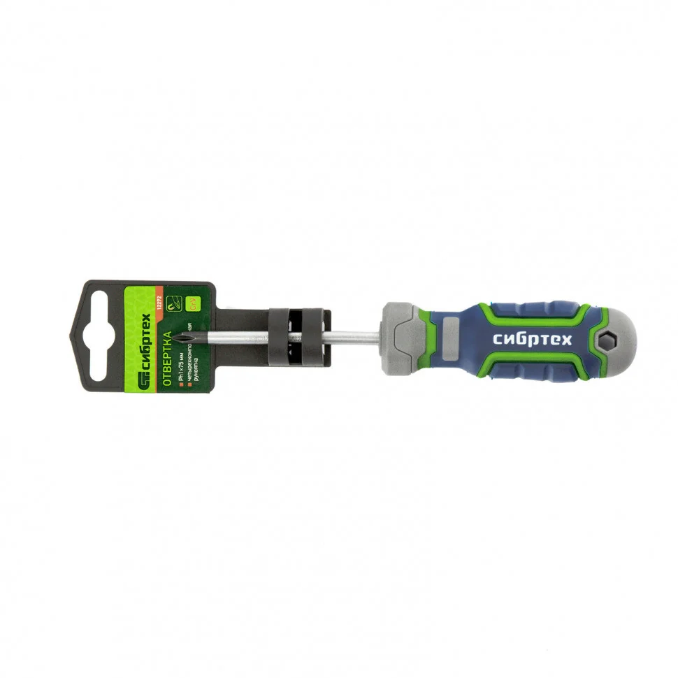 Отвертка Сибртех 12272, PH1 х 75 мм, из стали CrV, с 4-х компонентной рукояткой, имеет крестовой шлиц Philips, поэтому подходит для монтажа и извлечения крепежа соответствующего типа. Она рассчитана как на бытовые работы, так и на профессиональное применение: сборку мебели, монтаж различных конструкций и т.д. Стержень длиной 75 мм позволяет работать в углублениях и на поверхностях.ПреимуществаОтвертка обладает высоким ресурсом и прочностью, т.к. стержень изготовлен из износостойкой хромованадиевой стали, шлиц дополнительно закален до твердости 50-55 HRC.За счет намагниченного жала отвертки крепеж не нужно удерживать рукой.Рабочая часть отвертки фосфатирована, что обеспечивает лучшее сцепление с головкой крепежа.Благодаря обозначению типа шлица и длины стержня на затыльнике рукояти отвертку легко найти среди других инструментов.Четырехкомпонентная рукоятка имеет сложную рельефную форму, за счет чего она надежно лежит в руке, не проскальзывает и снижает нагрузку на запястье.