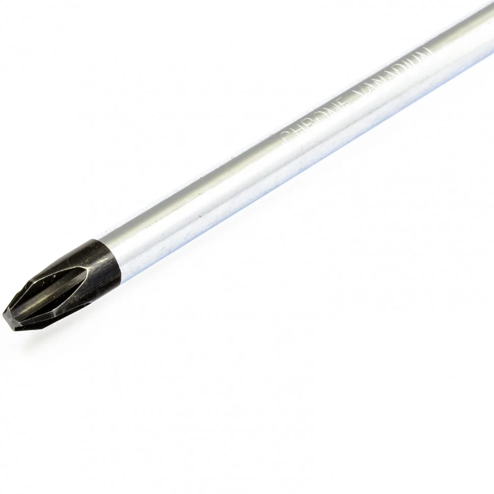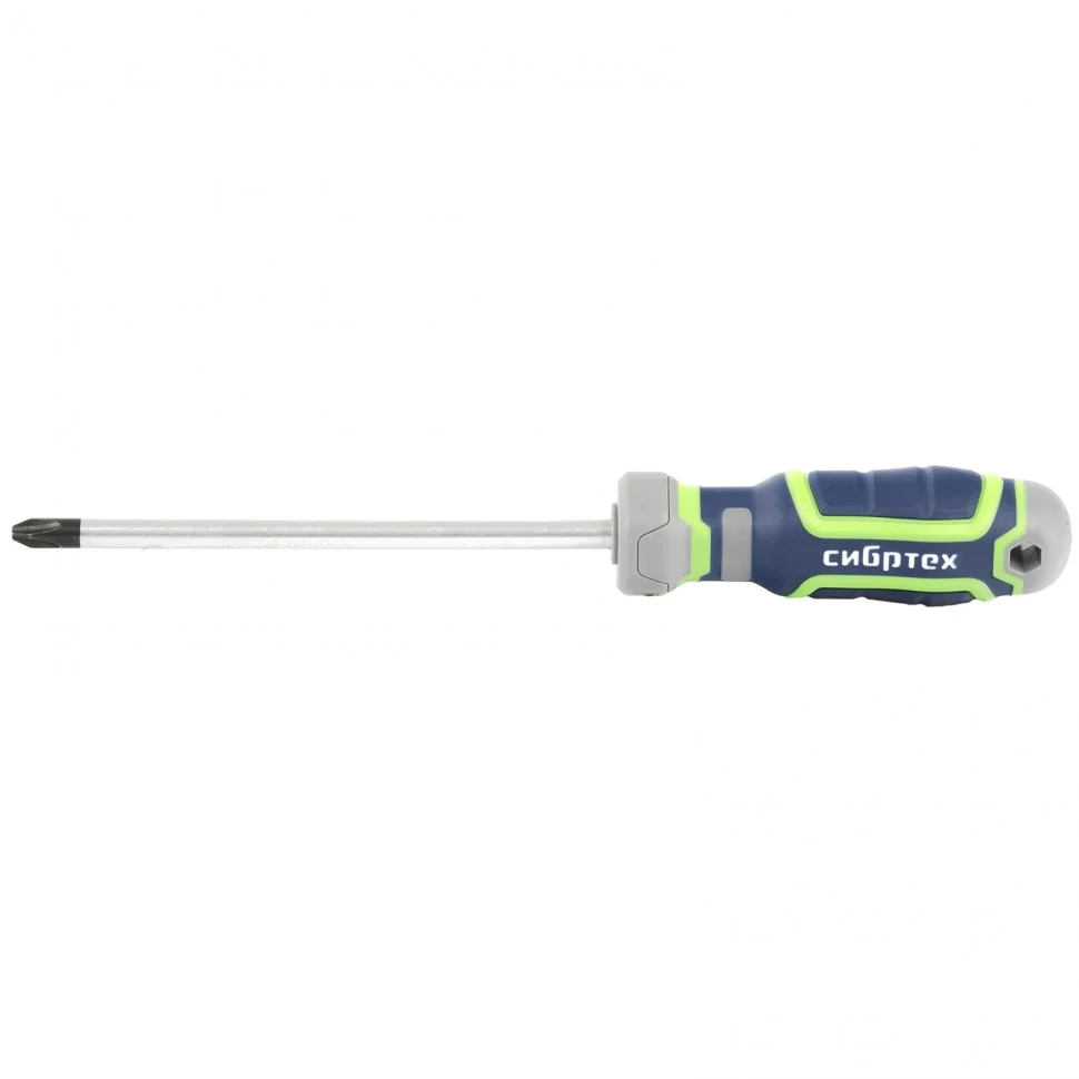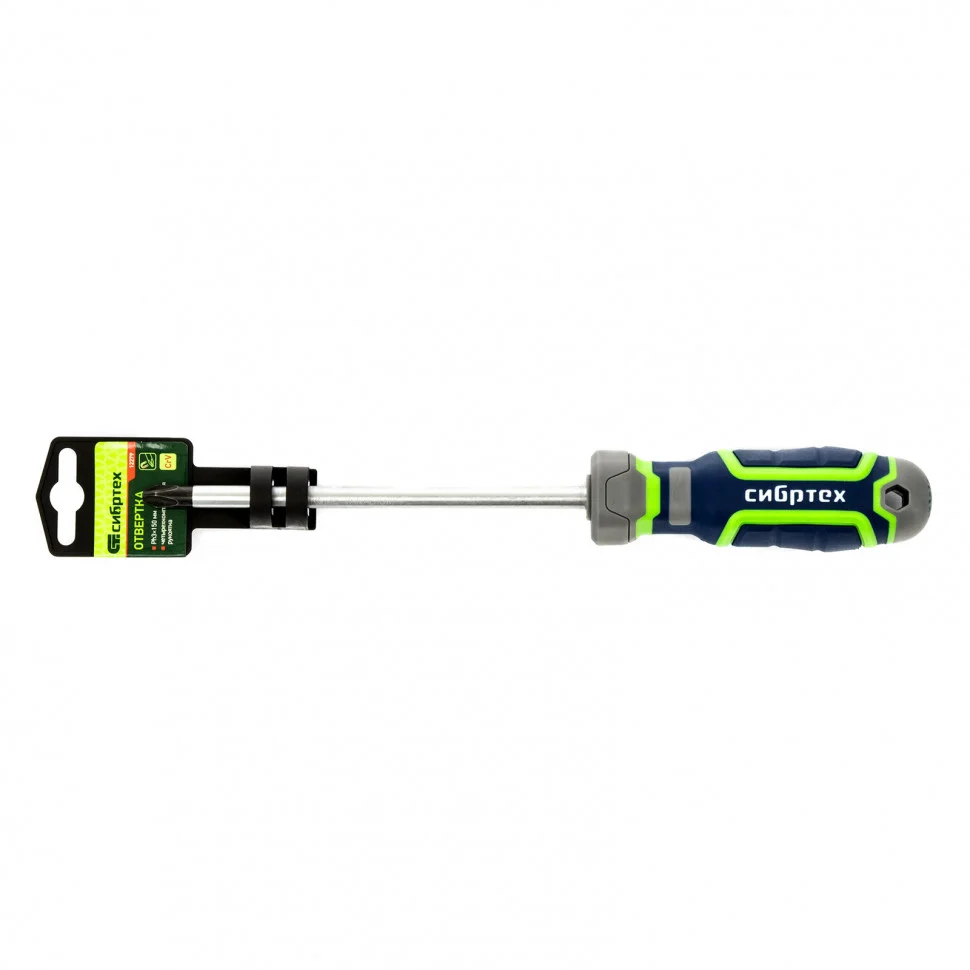 Отвертка Сибртех 12279, PH3 х 150 мм, из стали CrV, с 4-х компонентной рукояткой, имеет крестовой шлиц Philips, поэтому подходит для монтажа и извлечения крепежа соответствующего типа. Она рассчитана как на бытовые работы, так и на профессиональное применение: сборку мебели, монтаж различных конструкций и т.д. Стержень длиной 150 мм позволяет работать в углублениях и на поверхностях.ПреимуществаОтвертка обладает высоким ресурсом и прочностью, т.к. стержень изготовлен из износостойкой хромованадиевой стали, шлиц дополнительно закален до твердости 50-55 HRC.За счет намагниченного жала отвертки крепеж не нужно удерживать рукой.Рабочая часть отвертки фосфатирована, что обеспечивает лучшее сцепление с головкой крепежа.Благодаря обозначению типа шлица и длины стержня на затыльнике рукояти отвертку легко найти среди других инструментов.Четырехкомпонентная рукоятка имеет сложную рельефную форму, за счет чего она надежно лежит в руке, не проскальзывает и снижает нагрузку на запястье.