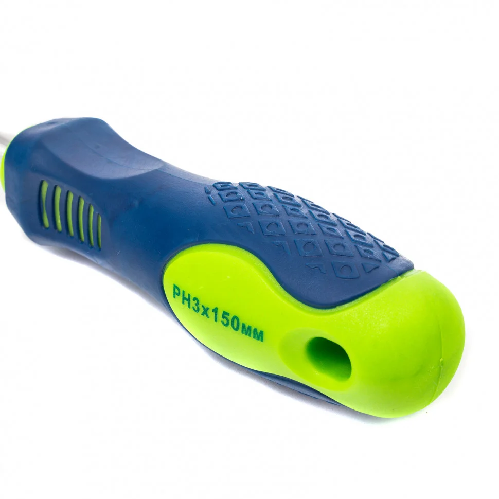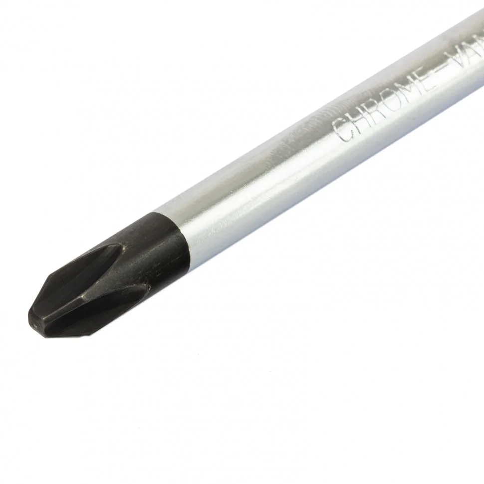 Отвертка Сибртех 11851, PH3 х 150 мм, из стали CrV, с 2-х компонентной рукояткой и крестовым шлицем позволяет проводить монтаж/демонтаж крепежных элементов типа Phillips. Она поможет произвести ремонт бытовой техники, повесить полки, собрать мебель и выполнить другие работы. Отвертка относится к полупрофессиональному классу инструментов. Благодаря стержню длиной 150 мм ей можно работать в углублениях и на поверхностях.ПреимуществаСтержень из хромованадиевой стали твердостью 50-54 HRC обладает высокими прочностными характеристиками.Фосфатированный наконечник стержня обеспечивает улучшенное сцепление со шлицем крепежа.Специальная маркировка, нанесенная на рукоятку, с обозначением типа шлица и длины стержня помогает быстро найти нужный инструмент.Удобная двухкомпонентная рукоятка имеет ромбовидные насечки и подпальцевые выемки для снижения нагрузки на запястье.