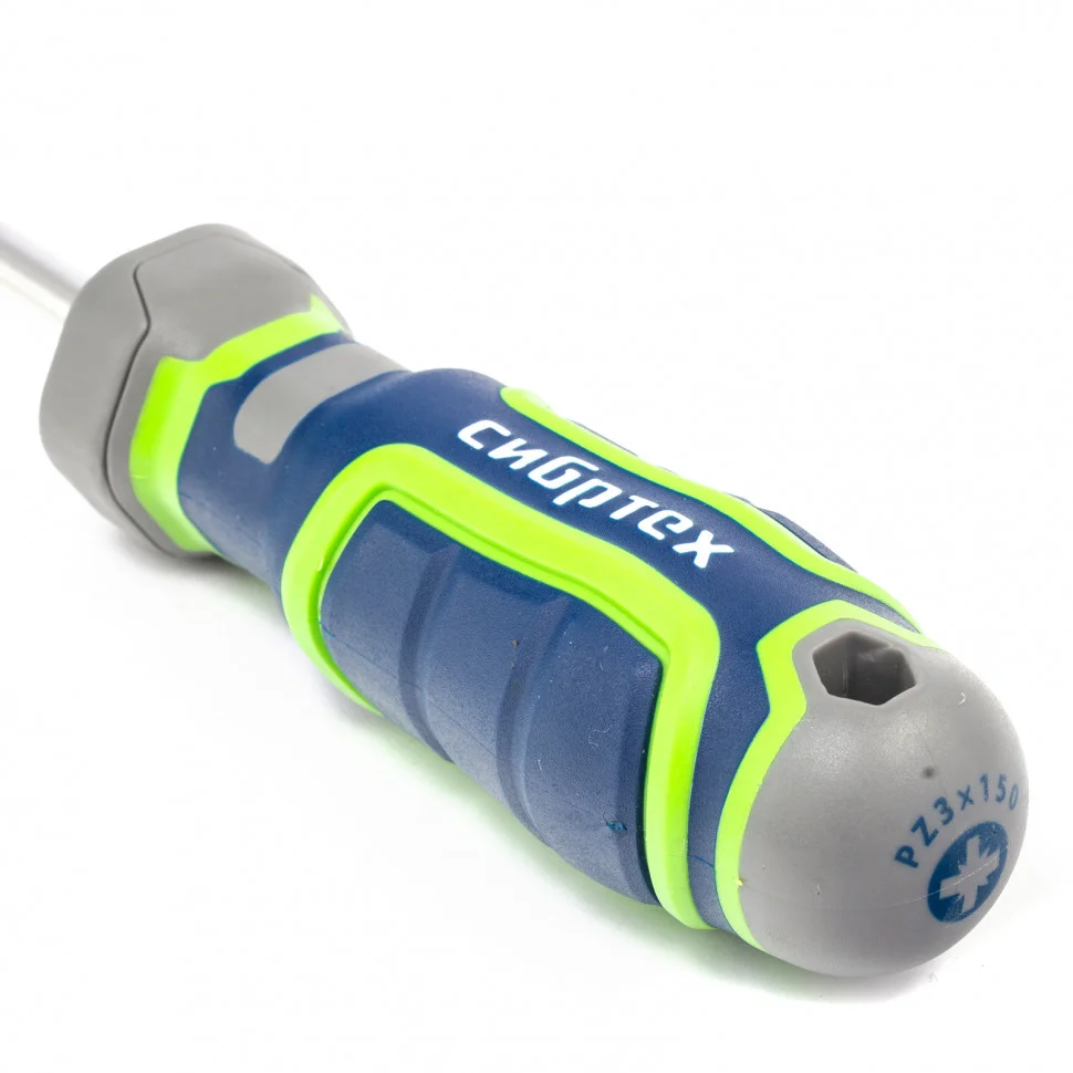 Отвертка Сибртех 12283, PZ3 х 150 мм, из стали CrV, с 4-х компонентной рукояткой, оснащена крестообразным шлицем с 4 дополнительными насечками, который обеспечивает точность работы и не проскальзывает в головке крепежа. С ее помощью можно произвести монтаж/демонтаж крепежа типа Pozidriv. Отвертка пригодится в быту для сборки мебели, монтажа полок, подвесных конструкций и т.д. Стержень длиной 150 мм рассчитан на работу с крепежом, расположенным на поверхностях или в углублениях.ПреимуществаВысокие показатели износостойкости — отвертка со стержнем из хромованадиевой стали и шлицем твердостью 50-55 HRC прослужит долгое время.Намагниченный наконечник — крепеж можно насадить на жало отвертки, поэтому не требуется удерживать его рукой.Фосфатированная рабочая часть — отвертка не проскальзывает в головке крепежа, шлиц не «слизывается».Быстрый поиск отвертки — на затыльнике рукоятки имеется обозначение типа шлица и длины стержня.Удобство работы — четырехкомпонентная рукоятка со сложной рельефной формой не скользит в руке и снижает нагрузку на запястье.