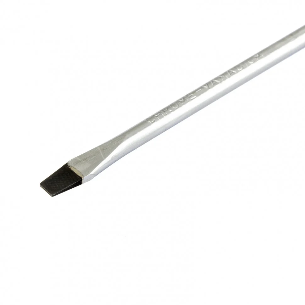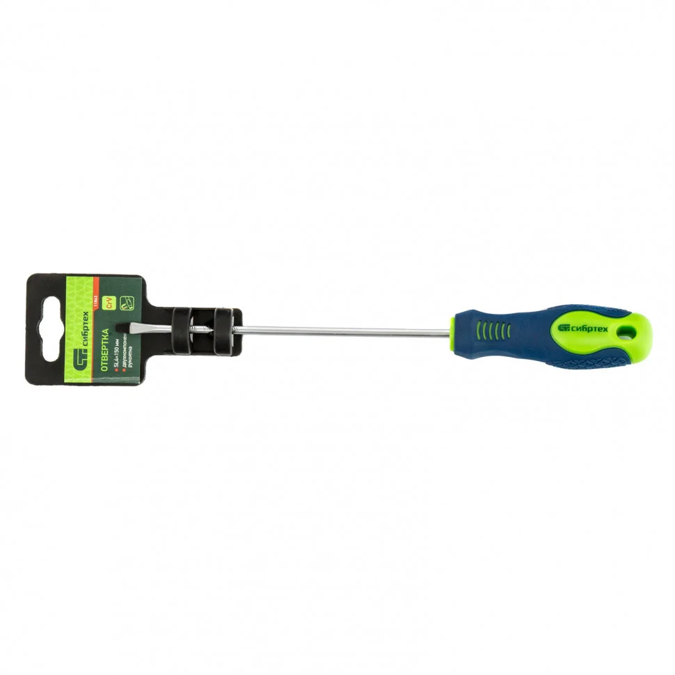 Отвертка Сибртех 11863, SL4,0 х 150 мм, из стали CrV, с 2-х компонентной рукояткой, подходит для работ, не требующих большого усилия затяжки. С ее помощью осуществляется монтаж/демонтаж крепежных элементов типа Slotted. Отвертка оснащена стержнем длиной 150 мм для работ в углублениях и на поверхностях. Инструмент пригодится для полупрофессионального применения.ПреимуществаСтержень из хромованадиевой стали твердостью 50-54 HRC характеризуется износостойкостью, что положительно сказывается на его сроке службы.Фосфатированный наконечник стержня позволяет добиться улучшенного сцепления с головкой крепежа.Отвертка имеет маркировку с типом шлица и длины стержня для удобства поиска отвертки среди других инструментов.Специальные насечки на двухкомпонентной эргономичной рукоятке предотвращают ее проскальзывание в руке.