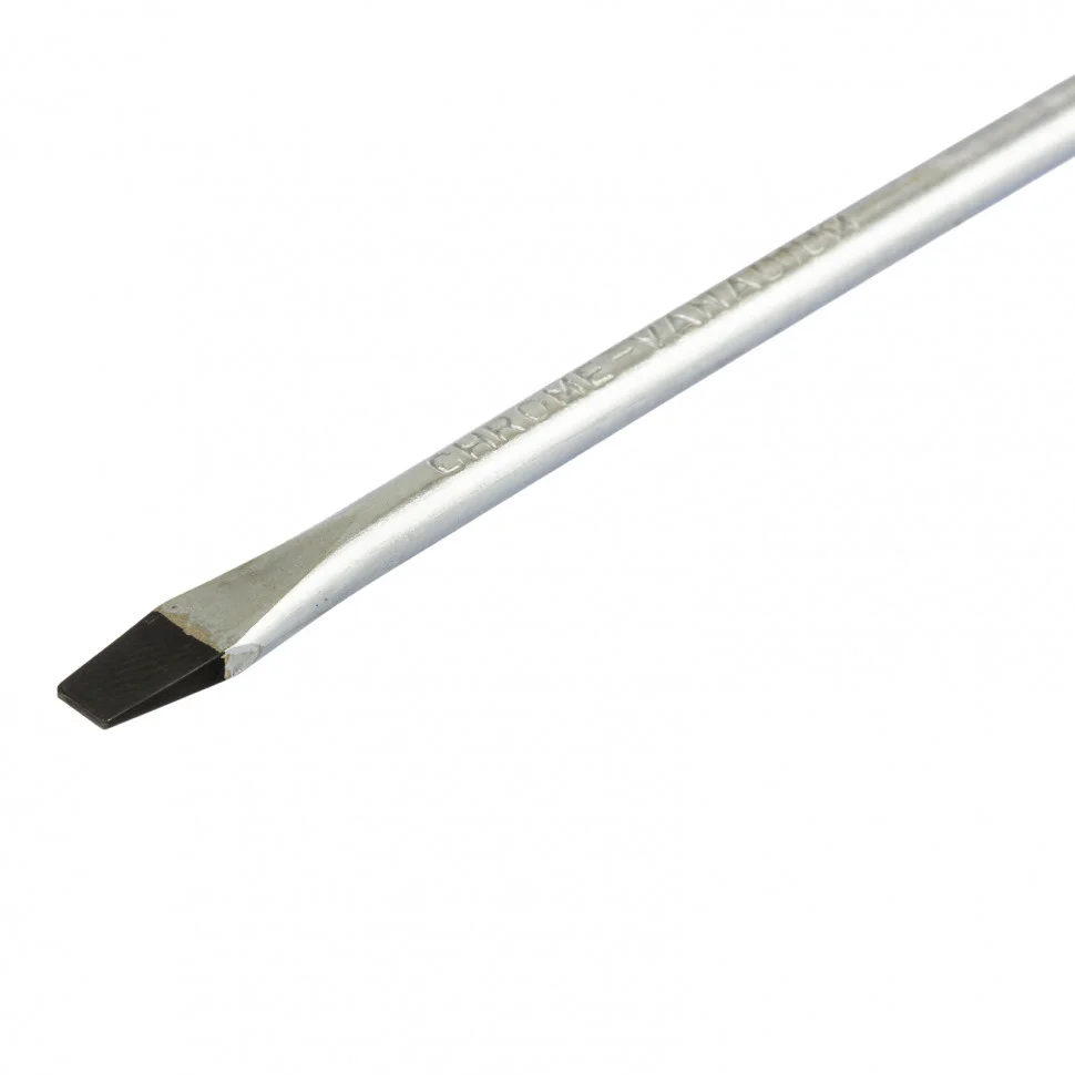 Отвертка Сибртех 11825, SL4,0 х 150 мм, из стали CrV, с 3-х компонентной рукояткой, пригодится для монтажа/демонтажа резьбовых соединений типа Slotted. С ее помощью можно осуществить работы, требующие полноценной затяжки крепежа. Стержнем длиной 150 мм удобно работать на поверхностях и в углублениях.ПреимуществаВысокие прочностные характеристики — стержень выполнен из хромованадиевой стали и закален до твердости 50-54 HRC.Фосфатированный наконечник — жало не соскальзывает с головки крепежа.Специальная маркировка — на рукоятку нанесено обозначение типа шлица и длины стержня для быстрого поиска нужной отвертки.Удобная рукоятка — квадратные насечки с подпальцевыми выемками снижают усталость рук при длительной работе.