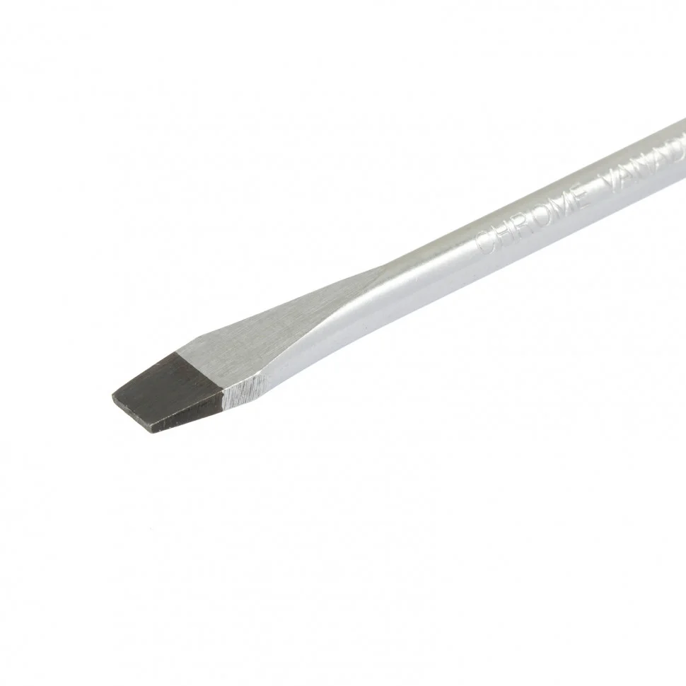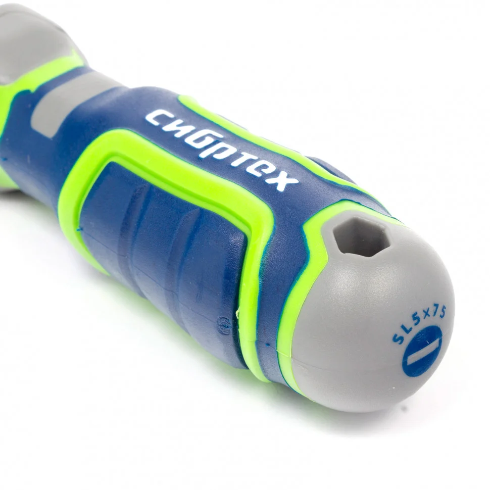 Отвертка Сибртех 12263, SL5,0 х 75 мм, из стали CrV, с 4-х компонентной рукояткой, используется при проведении работ, требующих приложения серьезного крутящего момента. Отвертка со шлицем Slotted подходит для закручивания и извлечения крепежа аналогичного типа. Стержнем длиной 75 мм удобно работать в углублениях и на поверхностях.ПреимуществаОтвертка отличается высоким качеством исполнения — стержень изготовлен из хромованадиевой стали, а шлиц закален до твердости 50-55 HRC.Намагниченное жало повышает удобство работы, т.к. избавляет от необходимости придерживать крепеж рукой.Шлиц фосфатирован для лучшего сцепления с головкой крепежа.Маркировка типа шлица и длины стержня на затыльнике рукояти позволяет легко найти отвертку в зоне хранения.Четырехкомпонентная рукоятка со сложной рельефной формой обеспечивает надежное удержание отвертки, снижает усталость рук и увеличивает передачу крутящего момента.