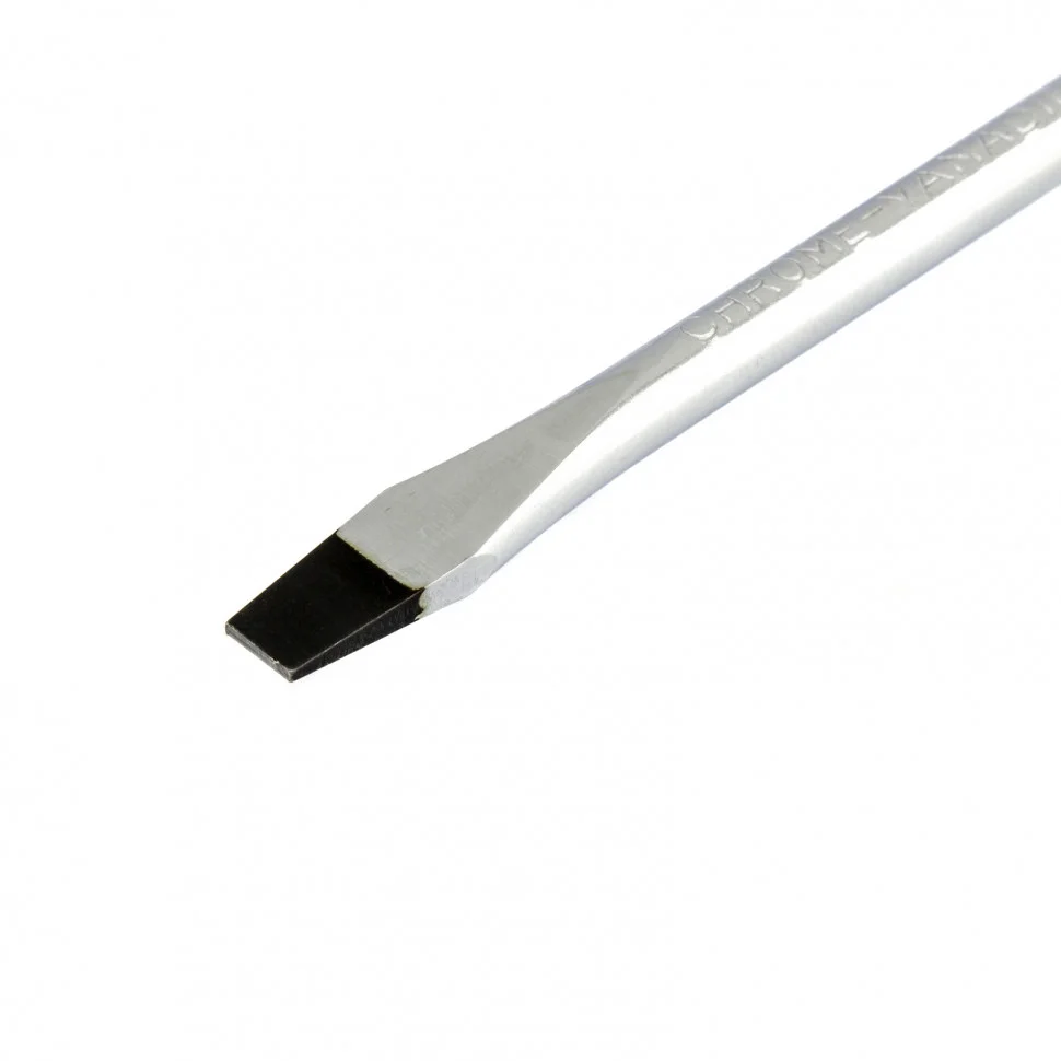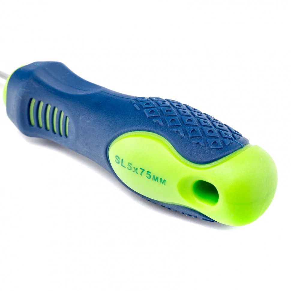 Отвертка Сибртех 11865, SL5,0 х 75 мм, из стали CrV, с 2-х компонентной рукояткой, подходит для работ, не требующих большого усилия затяжки. С ее помощью осуществляется монтаж/демонтаж крепежных элементов типа Slotted. Отвертка оснащена стержнем длиной 75 мм для работ в углублениях и на поверхностях. Инструмент пригодится для полупрофессионального применения.ПреимуществаСтержень из хромованадиевой стали твердостью 50-54 HRC характеризуется износостойкостью, что положительно сказывается на его сроке службы.Фосфатированный наконечник стержня позволяет добиться улучшенного сцепления с головкой крепежа.Отвертка имеет маркировку с типом шлица и длины стержня для удобства поиска отвертки среди других инструментов.Специальные насечки на двухкомпонентной эргономичной рукоятке предотвращают ее проскальзывание в руке.