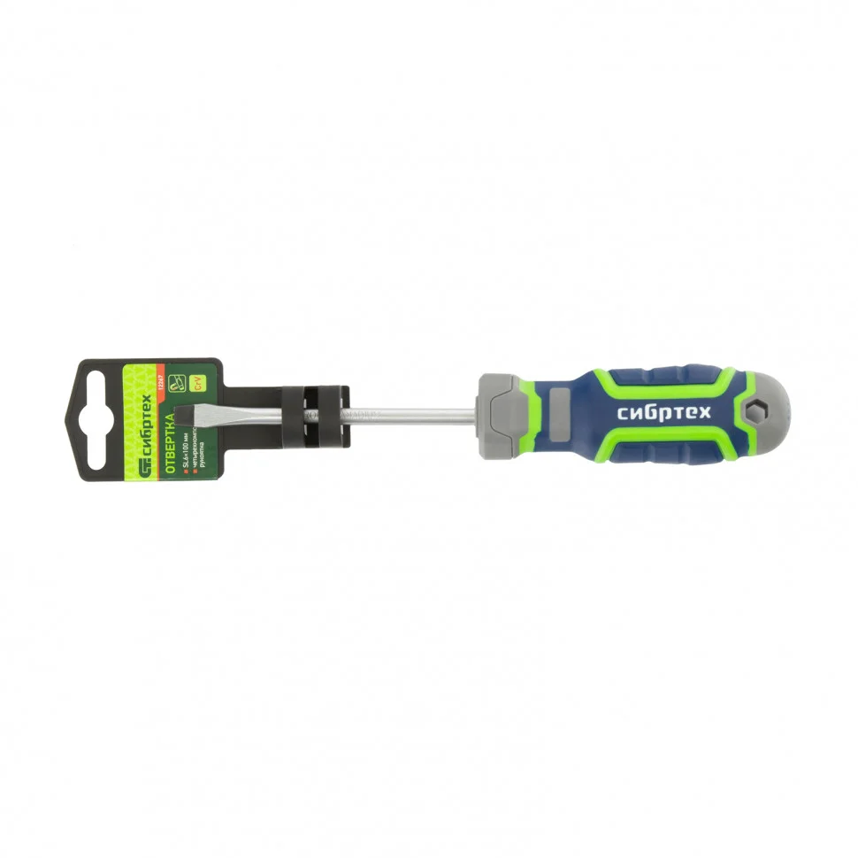Отвертка Сибртех 12267, SL6,0 х 100 мм, из стали CrV, с 4-х компонентной рукояткой, используется при проведении работ, требующих приложения серьезного крутящего момента. Отвертка со шлицем Slotted подходит для закручивания и извлечения крепежа аналогичного типа. Стержнем длиной 100 мм удобно работать в углублениях и на поверхностях.ПреимуществаОтвертка отличается высоким качеством исполнения — стержень изготовлен из хромованадиевой стали, а шлиц закален до твердости 50-55 HRC.Намагниченное жало повышает удобство работы, т.к. избавляет от необходимости придерживать крепеж рукой.Шлиц фосфатирован для лучшего сцепления с головкой крепежа.Маркировка типа шлица и длины стержня на затыльнике рукояти позволяет легко найти отвертку в зоне хранения.Четырехкомпонентная рукоятка со сложной рельефной формой обеспечивает надежное удержание отвертки, снижает усталость рук и увеличивает передачу крутящего момента.