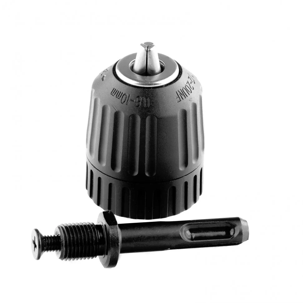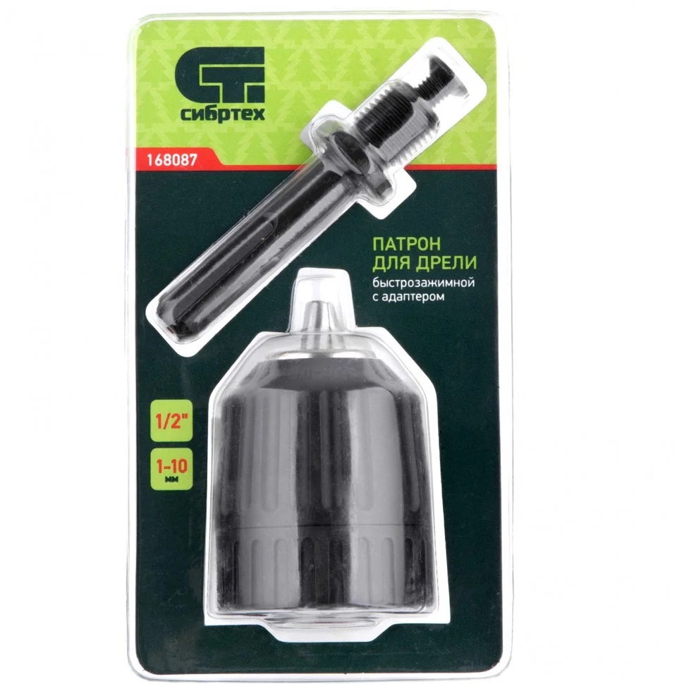 Патрон Сибртех БЗП 168087, тип соединения 1/2 дюйма, под сверла 1-10 мм, с адаптером SDS PLUS в комплекте, предназначен для использования с дрелью. Он надежно фиксирует оснастку, что обеспечивает комфортную работу. А благодаря переходнику SDS PLUS возможна работа с перфоратором.ПреимуществаТвердость кулачков патрона 54-56 HRC обеспечивает стойкость изделия к повышенным механическим нагрузкам и ударному сверлению.На смену оснастки не придется тратить много времени, т.к. патрон оснащен быстрозажимным механизмом.Маркировка на корпусе позволяет легко определить характеристики патрона.Патрон не выскальзывает из рук за счет рельефного корпуса.
