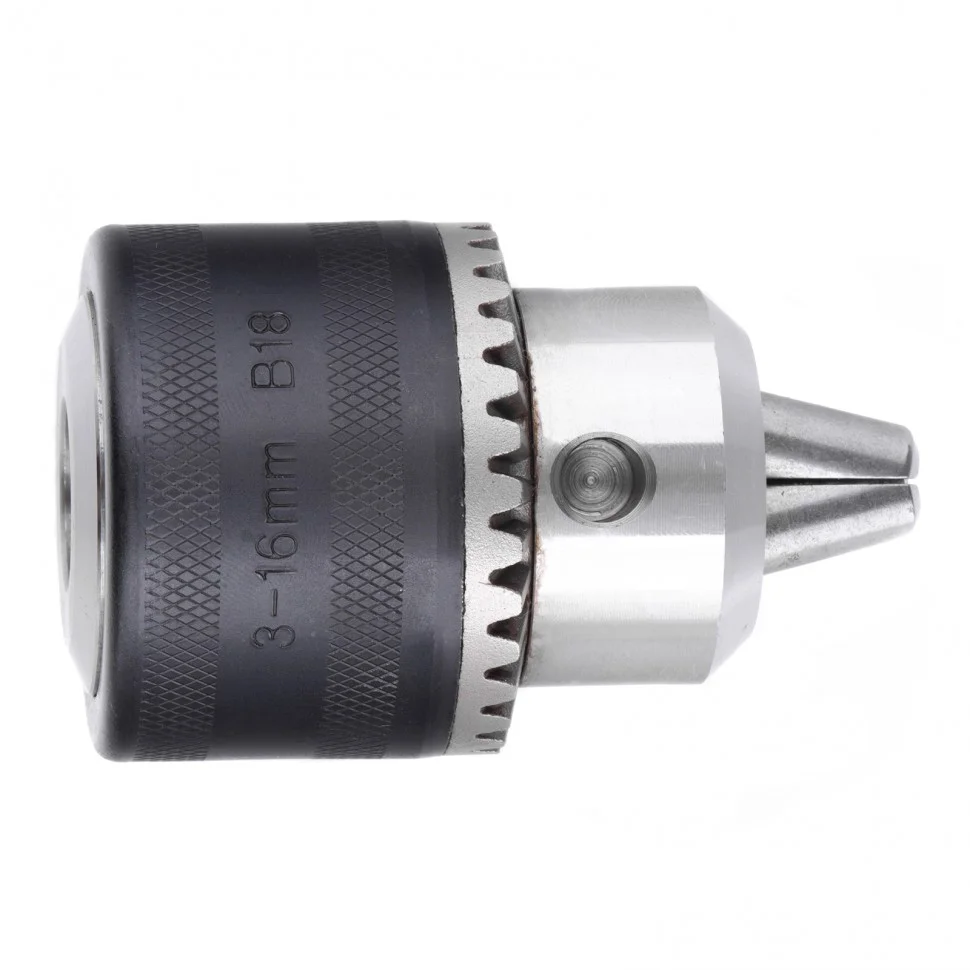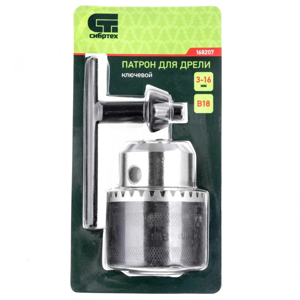 Ключевой патрон для дрели Сибртех 168207, тип соединения В18, обеспечивает надежную фиксацию сверл с хвостовиками 3-16 мм для осуществления сверлильных работ. Будет полезен в быту и для решения профессиональных задач.ПреимуществаТвердость кулачков патрона 54-56 HRC позволяет использовать его в ударном режиме и с повышенными механическими нагрузками.Оснастка в патроне фиксируется с помощью ключа, поэтому она надежно закреплена.Насечки на патроне предотвращают его проскальзывание в руках.Благодаря маркировке на корпусе патрона можно в любой момент посмотреть его характеристики.Патрон поставляется в комплекте с ключом и сразу готов к работе.