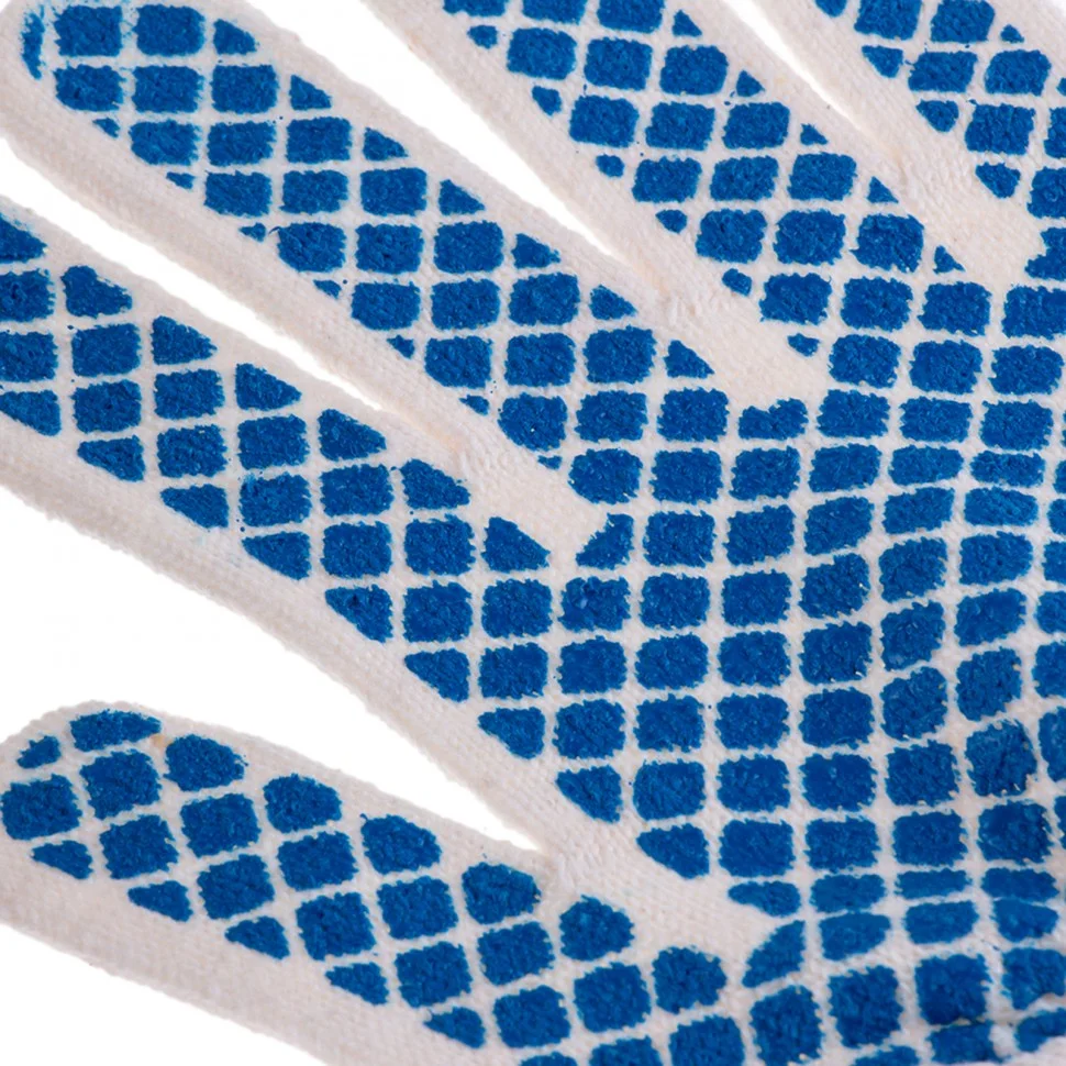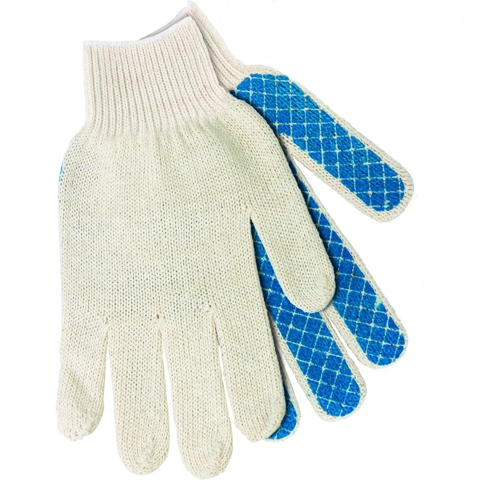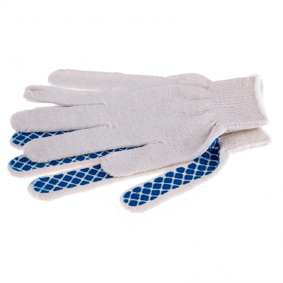 Трикотажные перчатки 67812 с ПВХ-покрытием «Шахматный облив», 10 класса вязки, 5 пар в упаковке, защищают руки от царапин, порезов, ссадин, мозолей и загрязнений. Тонкая пряжа обеспечивает пальцам чувствительность, поэтому перчатки подходят для выполнения точных работ. Благодаря ПВХ-покрытию ладонной части инструменты не выскальзывают из рук. Перчатки используют в строительстве, на производстве, во время ремонта помещений и обслуживания автомобилей. Пригодятся они и в хозяйстве.ПреимуществаОснова выполнена из воздухопроницаемой хлопчатобумажной пряжи, поэтому руки в перчатках не потеют.В пряже содержится полиэфирная нить, что повышает прочность и эластичность перчаток.Покрытие из ПВХ препятствует истиранию, продлевая срок службы изделий.Манжеты плотно облегают запястья, обеспечивая удобную посадку перчаток на кистях рук.Материал перчаток не вызывает аллергии, поэтому их использование безвредно для здоровья.Перчатки не ограничивают движения пальцев, обеспечивая комфорт во время работы.Упаковки из 5 пар хватит надолго.