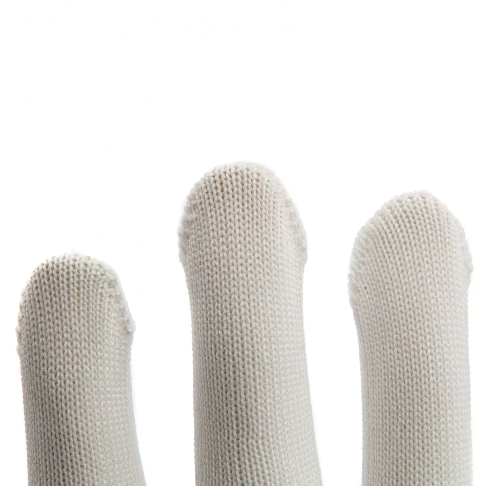Белые перчатки из синтетической нити 67825, 13 класс вязки, размера L, применяются для защиты рук от царапин и ссадин. Они станут незаменимым помощником при осуществлении строительных, ремонтных, садовых и других работ. Плотная ткань из тонких синтетических нитей сохраняет высокую чувствительность пальцев, что особенно актуально при проведении точных работ.ПреимуществаНейлоновые нити — перчатки гипоаллергенны, обладают высокой устойчивостью к истиранию и пропускают воздух, поэтому в них удобно работать.Эластичные манжеты — перчатки надежно фиксируются на запястье и не спадают.Многократное использование — перчатки можно стирать.
