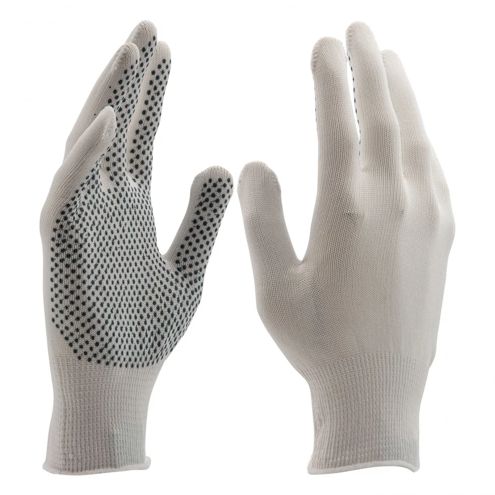 Перчатки Нейлон, ПВХ точка, 13 класс, белые, L Россия 67825