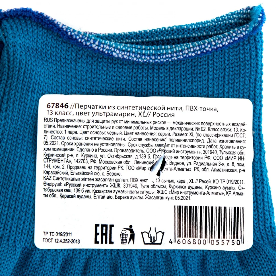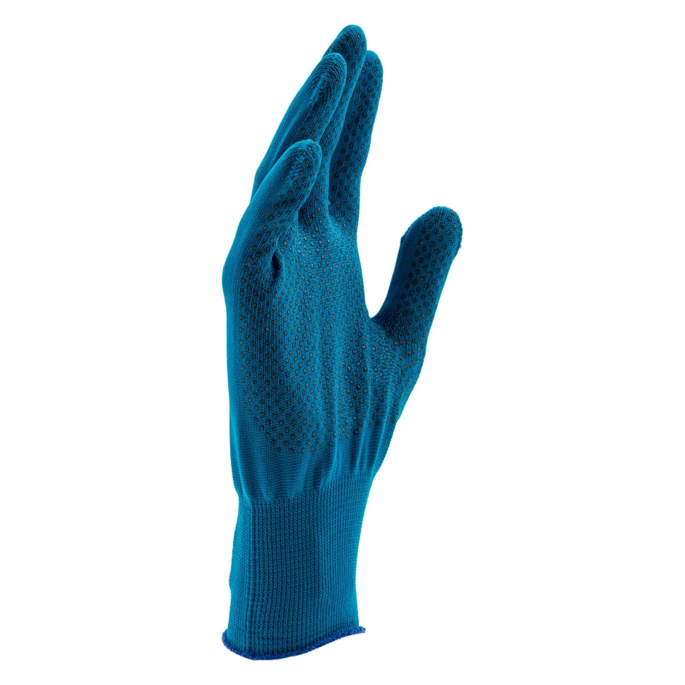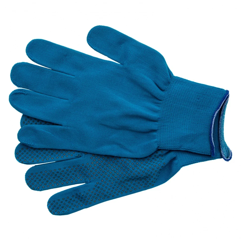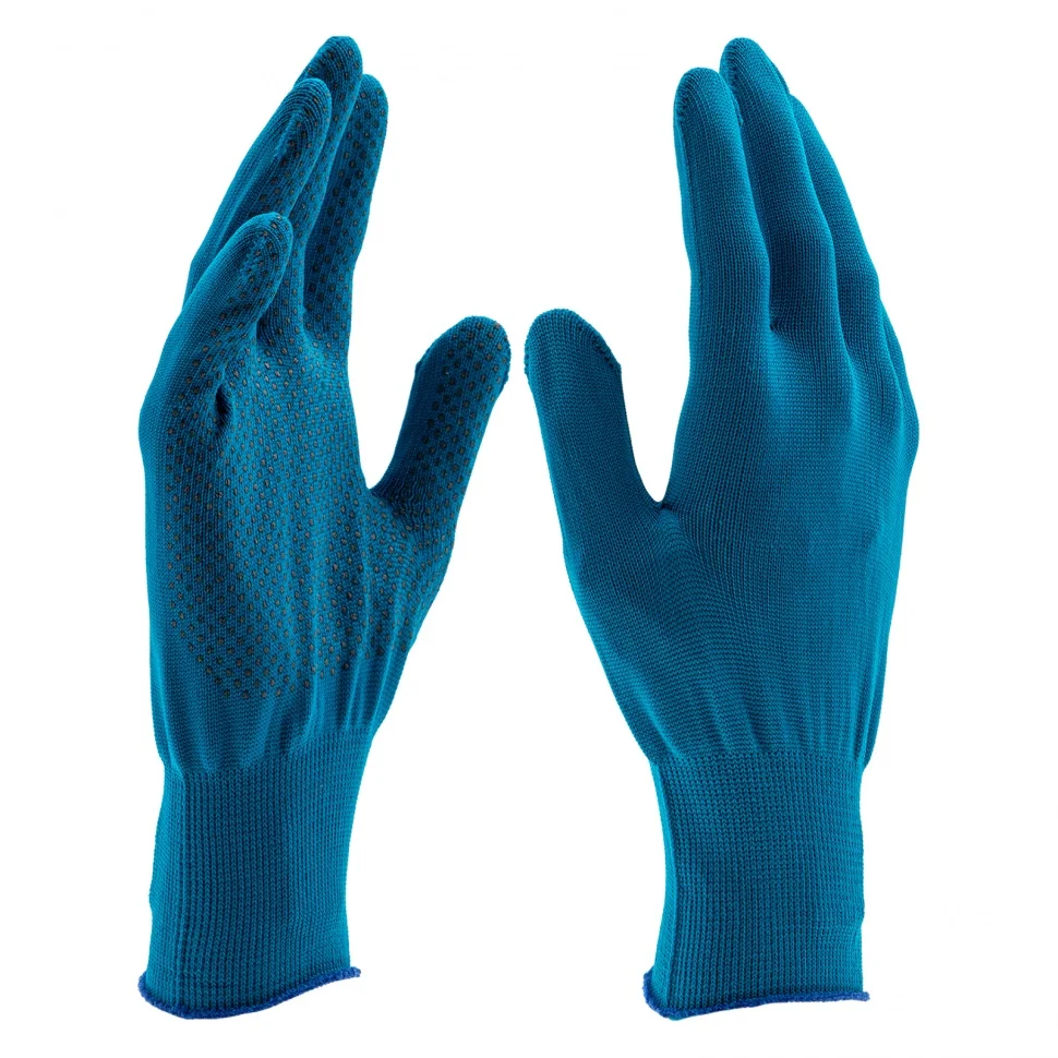 Перчатки из синтетической нити 67846 с ПВХ точкой, цвета «ультрамарин», 13 класс вязки, размера XL, применяются для защиты рук от царапин и ссадин. Они станут незаменимым помощником при осуществлении строительных, ремонтных, садовых и других работ. Плотная ткань из тонких синтетических нитей сохраняет высокую чувствительность пальцев, что особенно актуально при проведении точных работ.ПреимуществаНейлоновые нити — перчатки гипоаллергенны, обладают высокой устойчивостью к истиранию и пропускают воздух, поэтому в них удобно работать.Эластичные манжеты — перчатки надежно фиксируются на запястье и не спадают.Точечное ПВХ-покрытие — инструменты не будут выскальзывать из рук.