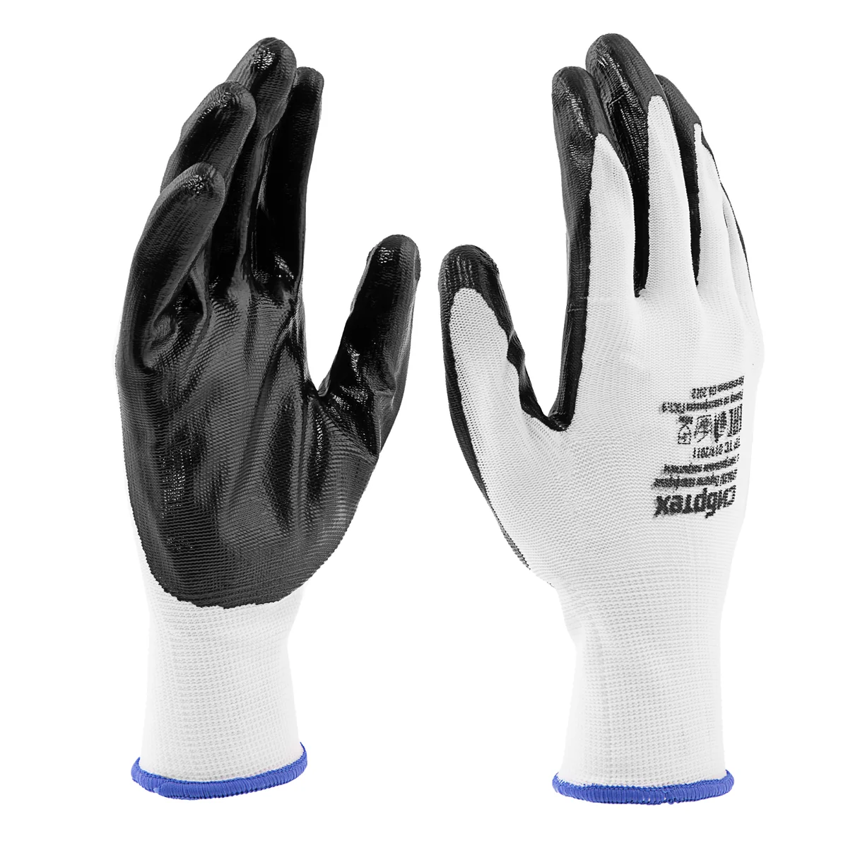 Полиэфирные перчатки Сибртех с нитрильным покрытием, предназначены для защиты рук от механических воздействий и общепроизводственных загрязнений при выполнении хозяйственных, ремонтных, строительных работ