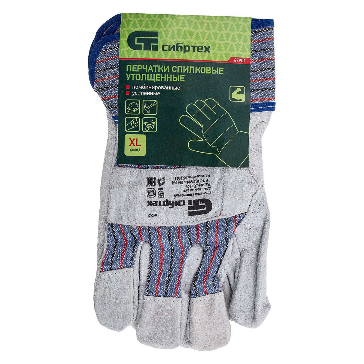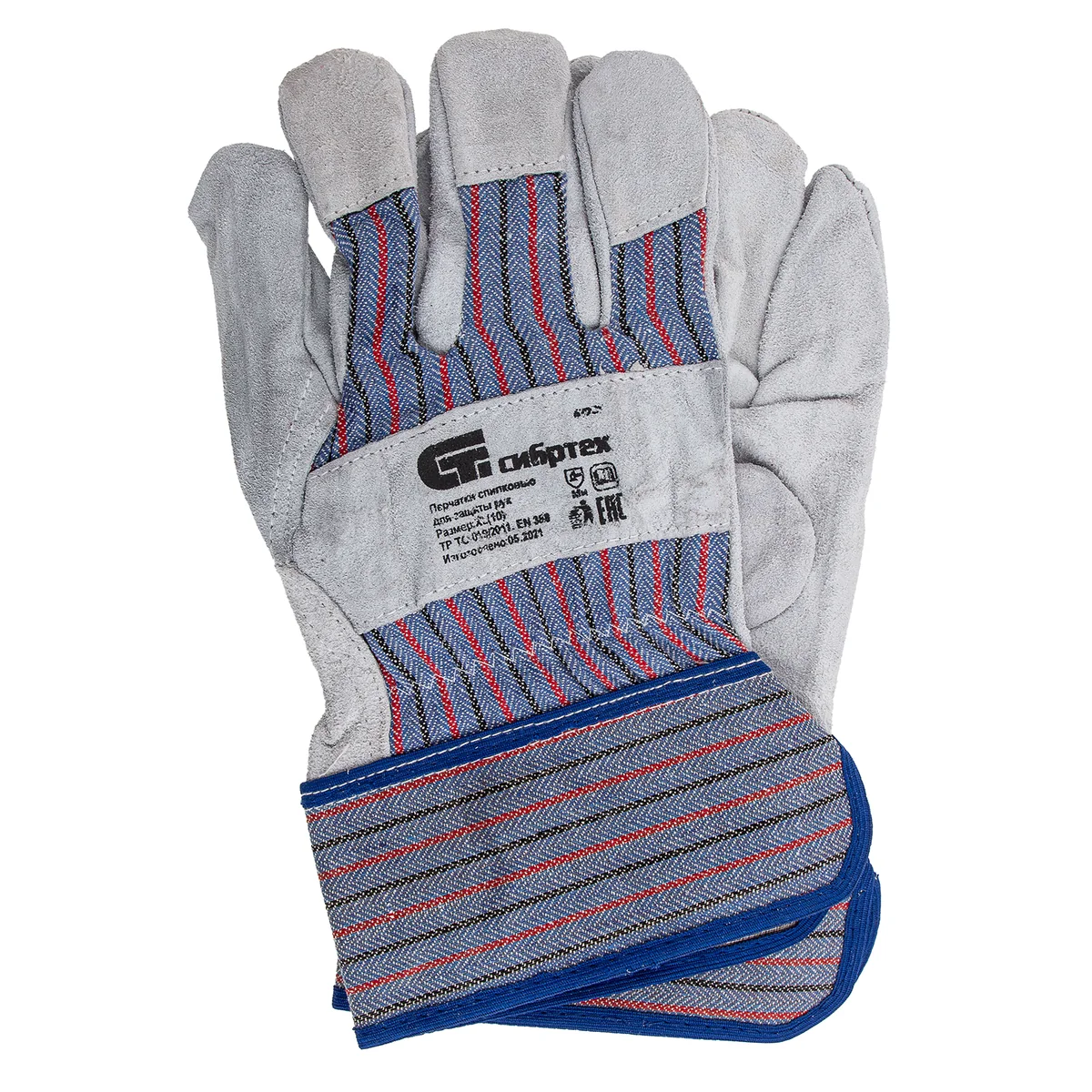 Перчатки спилковые комбинированные, размер XL, Сибртех 67901