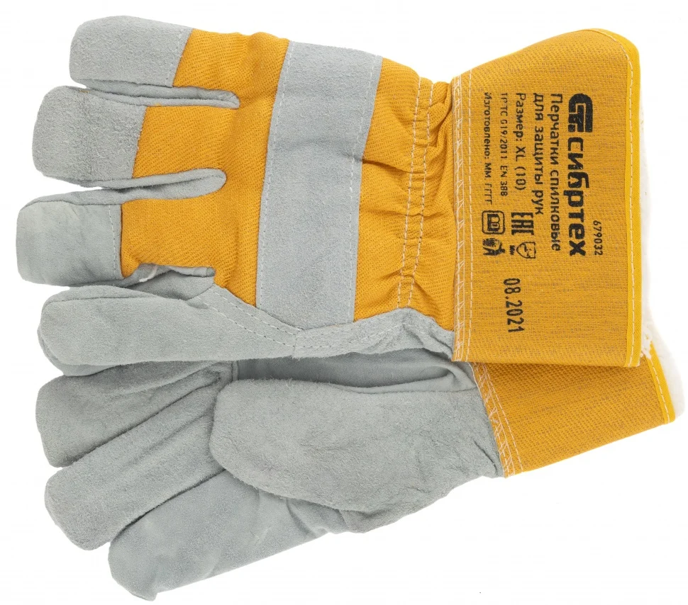 Перчатки спилковые комбинированные, усиленные, утолщенные, размер XL, Сибртех 679032